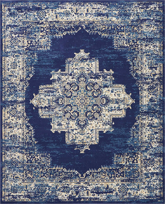 Navy Blue Silver Contemporary Chic Damask Soft Area Rug
