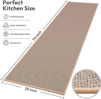 Nonskid, Washable,Absorbent Kitchen Runner Rug for in Front of Sink,Entryway,Hallway,Rubber Backing Indoor Door Mat,Farmhouse Style Standing Mat,17.3"x60",Brown