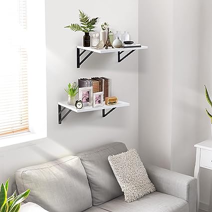 - Multi-Purpose, Decorative Shelves with Iron Brackets: Mount the brackets up or down for the function and look you desire. They’re smart for storage and decorative for display as office, bedroom, kitchen and bathroom shelves.