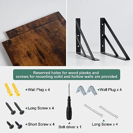 - Mounting Hardware Included: We’ve included two types of screws and anchors for both solid and plasterboard walls. All the tools you need for successful wall mounting are included, making this a complete wall shelf set.