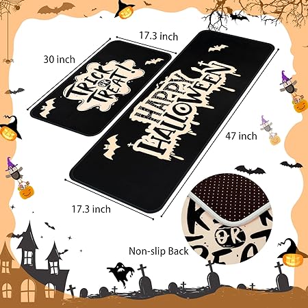 - Versatile and Practical: Our Halloween kitchen floor mat is a versatile accessory that can be used in various areas of your home, including the kitchen, laundry room, and doorway. Its durable construction can withstand high foot traffic and is easy to clean, making it a practical and stylish addition to your Halloween decor.