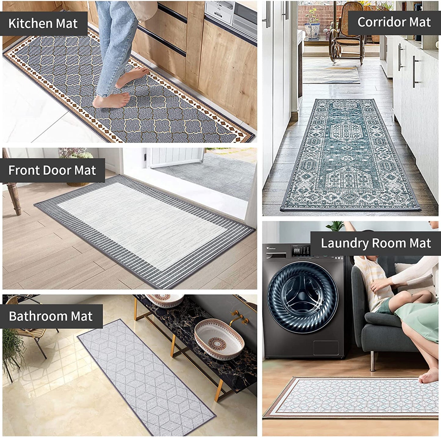 - 【Kitchen Rug Washable】 This kitchen mat also has a washable, non-slip kitchen mat that is easy to clean and take care of, and you can use a vacuum cleaner to complete simple daily cleaning. After using the kitchen rug mat for a long time, you can complete the deep cleaning of the laundry room rug by hand washing or machine washing (in a laundry bag is recommended). Use cold water machine wash for deep cleaning, no bleaching, no wringing, lay flat or dry at low temperature for best results.