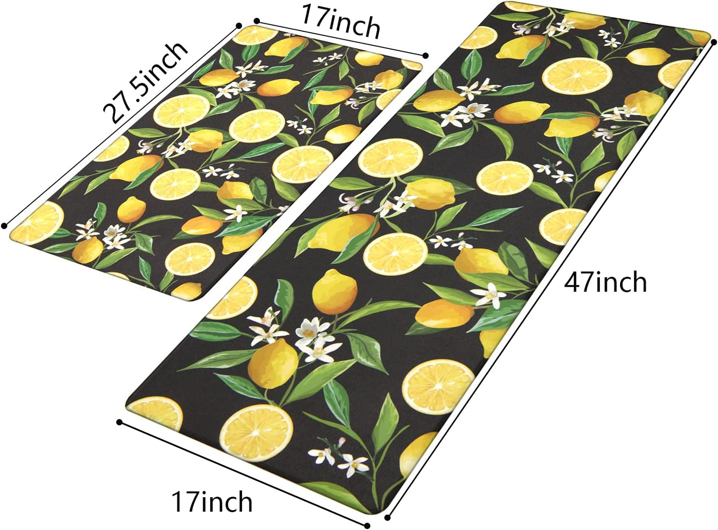- Soft dense PVC foam rug. Anti skid textures on top and bottom to increase friction. 3D Digital Print. Vivid Lemon, flower and leaf design. Vibrant Color. Fade Resistant.