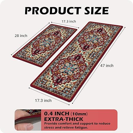 - 🐂【STANDARD SIZE】The rustic wood farm decor anti-fatigue kitchen rug set contains two sizes, 17.3 x 28 inches and 17.3 x 47 inches; thickness: 10mm/0.4 inch;this farmhouse kitchen rug fits perfectly in front of the kitchen sink or the area in front of the washer and dryer side by side.