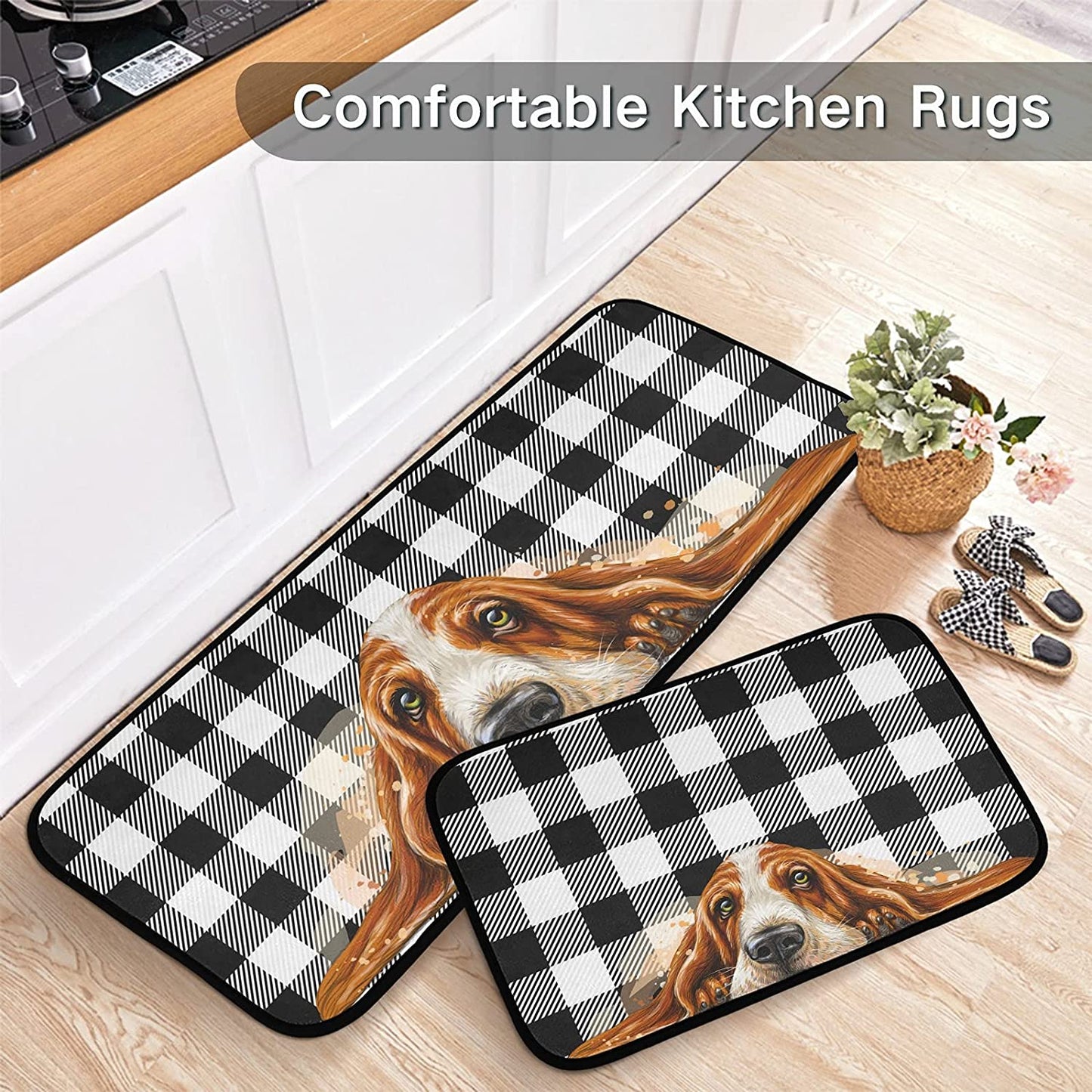 - NON-SLIP KITCHEN MAT - Your safety is our concern. Durable Kitchen Carpet Set has non-Skid latex rubber backing to ensure that it will stay in place on dry floor, won't slip or scuff floors, and keep you more safe & cozy. Note: Place the heavy duty kitchen mat set on a clean, dry, and smooth floor only. NEVER USE ON WET FLOORS to avoid slippage.