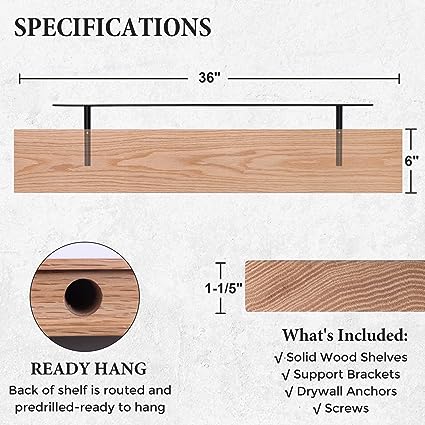 - [With Subtle Color Differences]: Since the floating shelf is made of natural wood which varies with the wooden node and grain, the color of each shelf can not be exactly the same, there may be subtle difference. If our shelves are not substantially as described - We Will Make It Right. Period! Please reach out to us, and we will fix any issues for you!