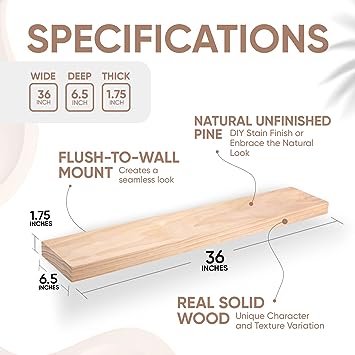 - Thick Solid Pine Wood: Unlike others, Homeforia shelves are handcrafted from the finest 1.75" Thick natural pine wood measuring 24" Wide x 6.5" Deep x 1.75". Each floating wall shelf is stained in Honey Oak color, revealing its own character of knots and natural brown wood grain; each ledge a little different, but equally stunning.