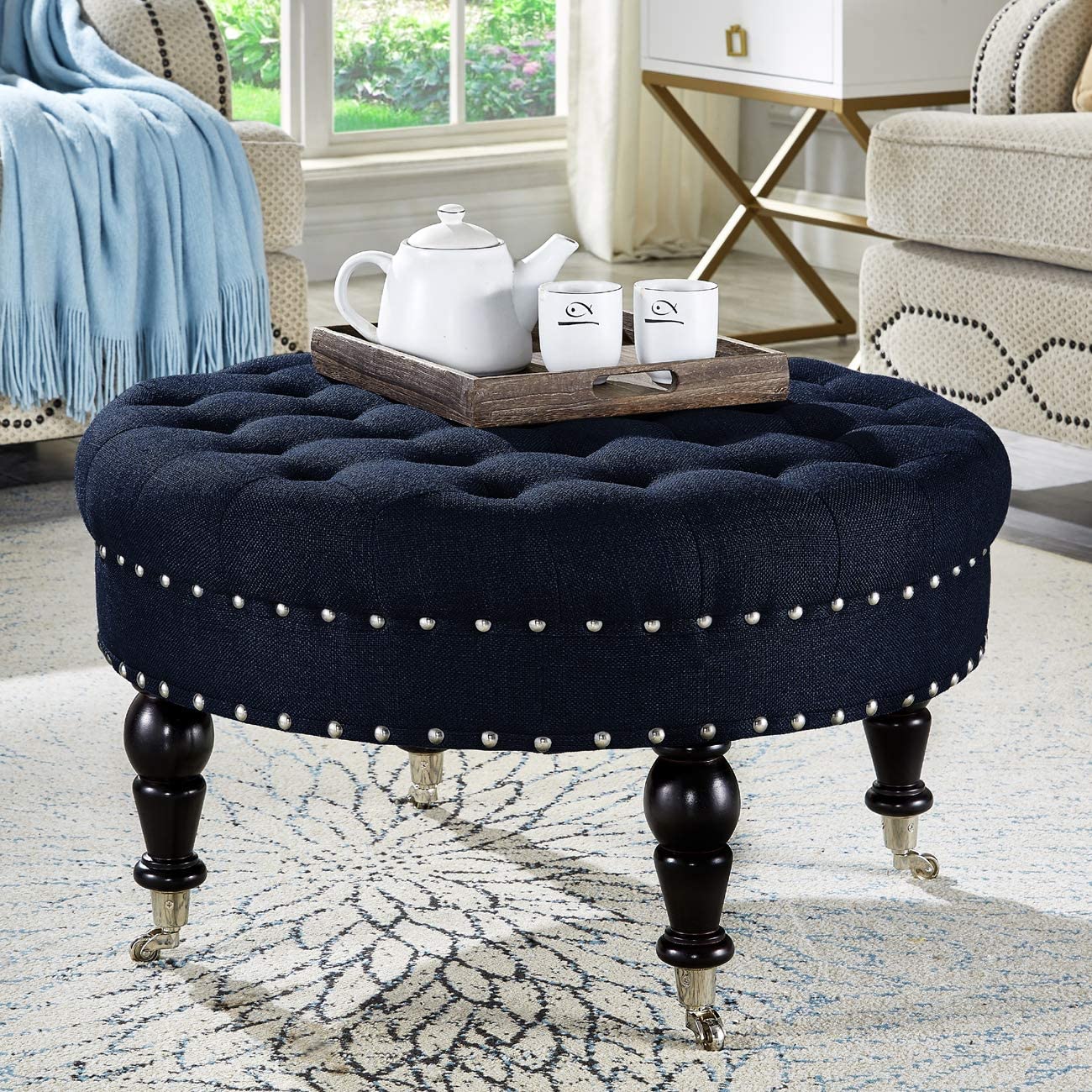 - Tufted top, round shape and convenient casters add effortless stylish flair.