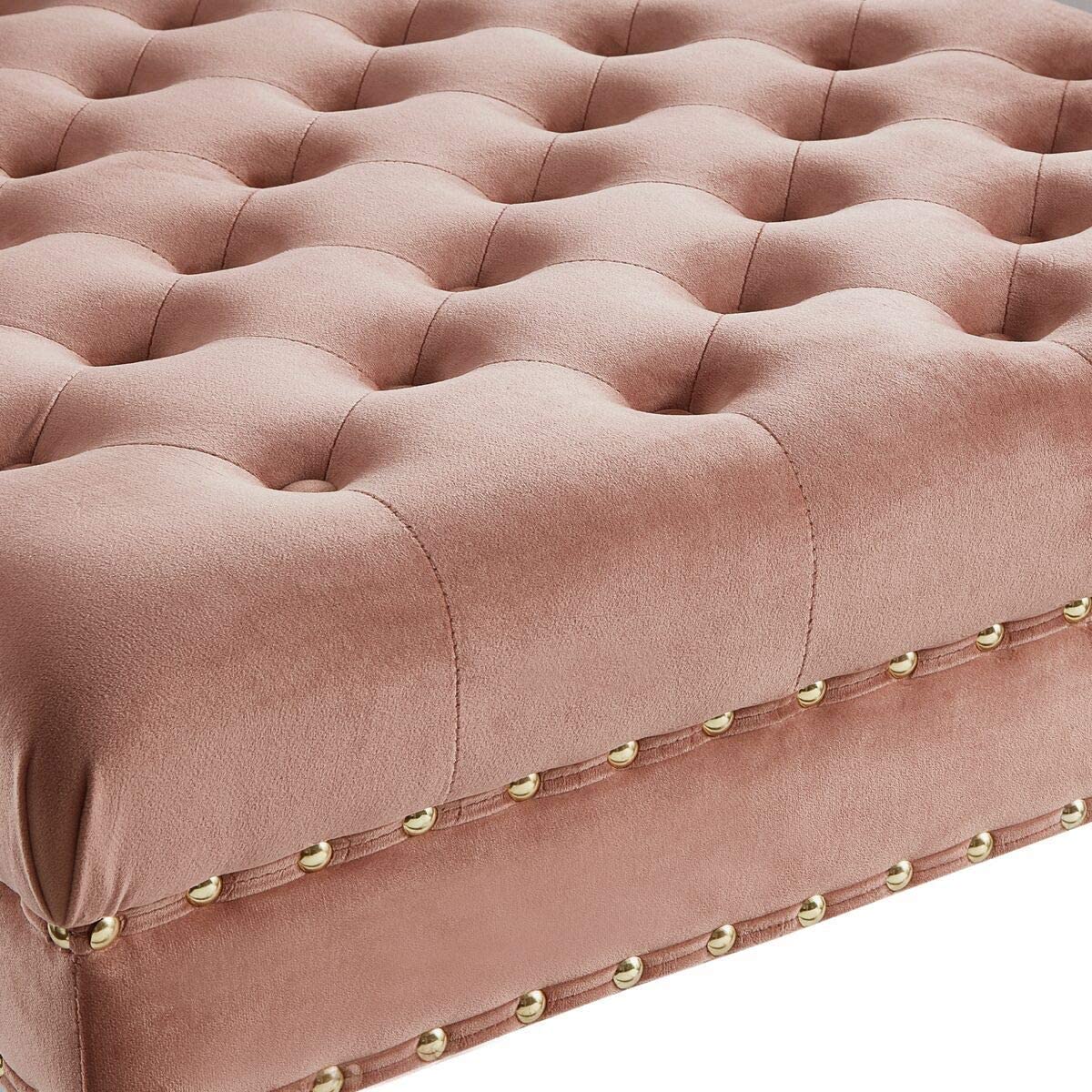 Tufted Button Linen Ottoman Coffee Table, Large Footrest with Caters Rolling Wheels