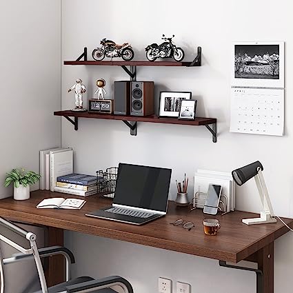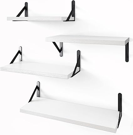 - 👍【Varied Floating Shelves】- Let‘s use our creativity and imagination! The uniquely designed matte surface metal triangular bracket can be installed on the top or bottom of the shelf. The two types of brackets and 4 paulownia wood shelves can produce a variety of combinations, such as 2+2, 1+2+1, 1+1+1+1 etc.