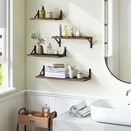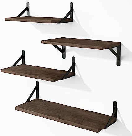 4 Sets of Wall Mounted Shelf for Bathroom Decor, Bedroom, Living Room and Plants (Carbonized Black)