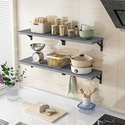 - 👍【Multi-Functional Shelves】- Our floating wall shelves are ideal choices for kitchen, living room, bedroom, bathroom, bathroom, office, etc. You can put seasoning bottles and dishes in the kitchen. In the bathroom you can put toiletries, towels. In the living room you can also put small flower pots, trophies, collectibles, books, photos, etc and even use them for cat shelves. These look clean, tidy and bring you the beauty of nature.