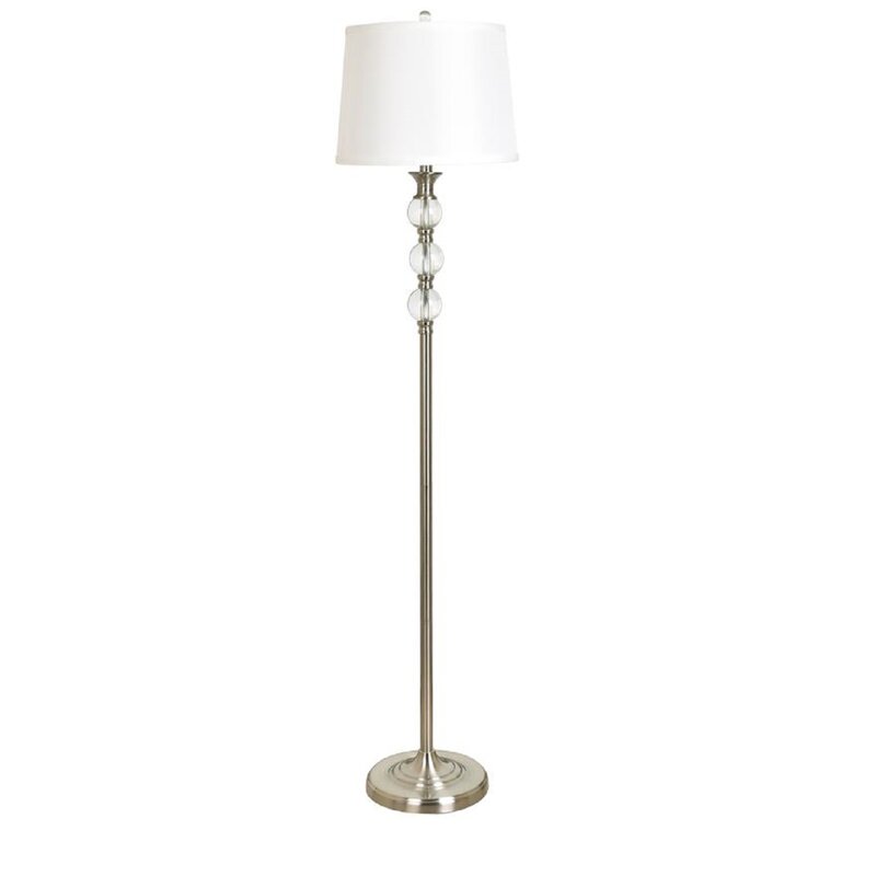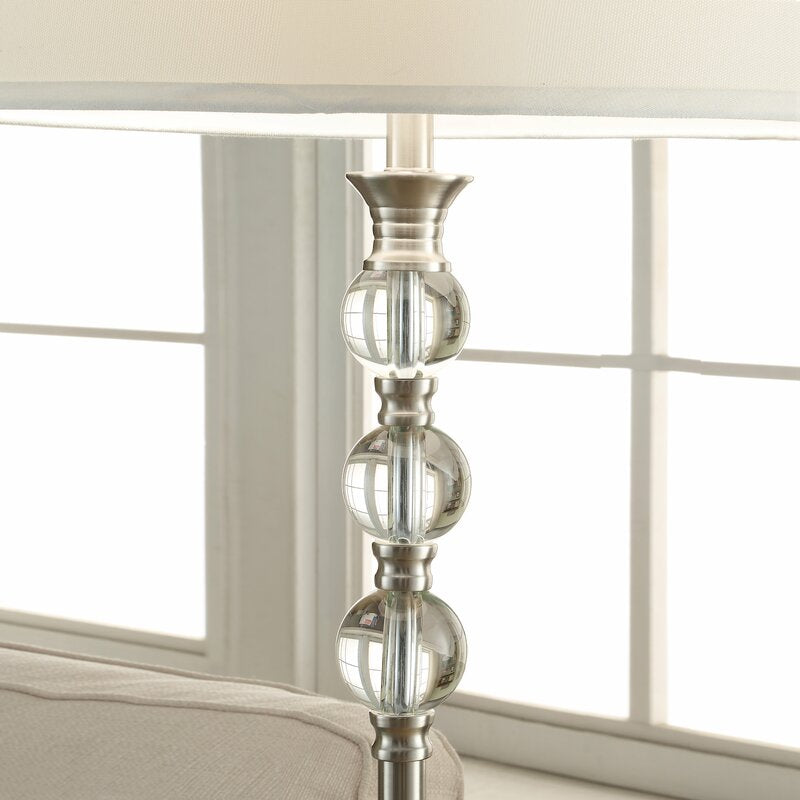 Equally alluring sitting sofa-side for a little illumination in the living room or just gleaming by the front door to greet guests with a warm and welcoming glow, this Shipton Crystal and Metal 61" Floor Lamp always adds flair to your ensemble. Crafted of metal with a brushed steel finish, its base is adorned with globe crystal accents for subtle pops of glamour. Up top, the look is leveled out with a beige linen drum shade highlighting the single light inside.