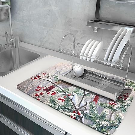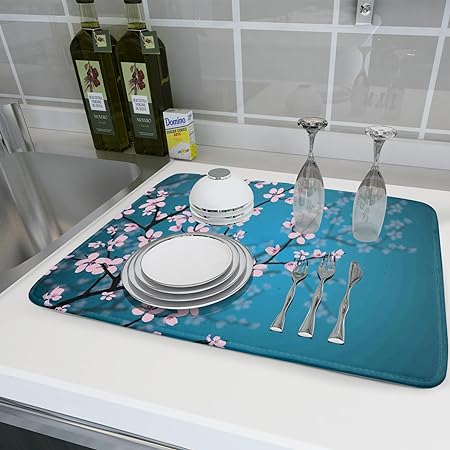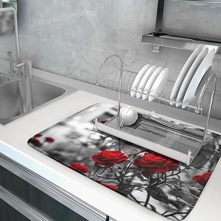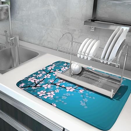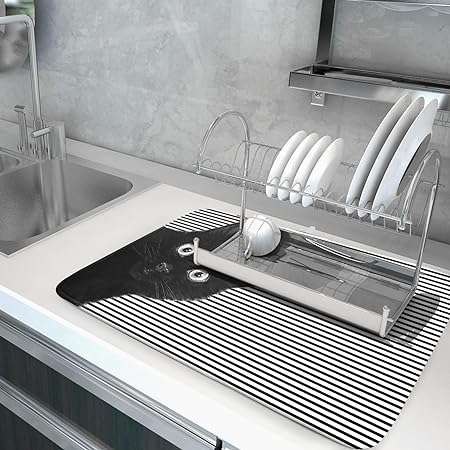 - 【Premium Material】This absorbent dish drying mat is made of polyester surface material, and the middle is composite sponge material, which quickly absorbs water to keep the kitchen countertop dry and clean. The dish drying mat can been double-sided uses with strong edging, not easy to disperse.