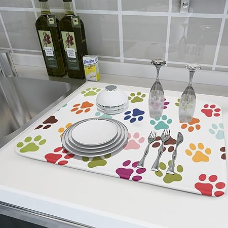 - 【Wide Usage】The dish drying mat designed with marbling granite pattern, it is beautiful, soft, and durable. Not only a dish drying mat, cup mat, heat resistant mat, you can also use it as a kitchen countertop insulation mat. It is also a good choice to use it as a pet mat, picnic mat.