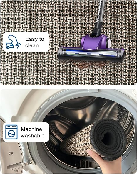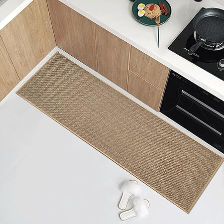 - Absorbent Floor Mat Machine Washable: country kitchen rugs are woven with classic jute fibers, which can absorb water and oil and can be machine washable, wiped off or vacuumed, saving so much time in cleaning. The washable kitchen rug features in high quality & easy maintenance and don't worry any fiber falling during cleaning.