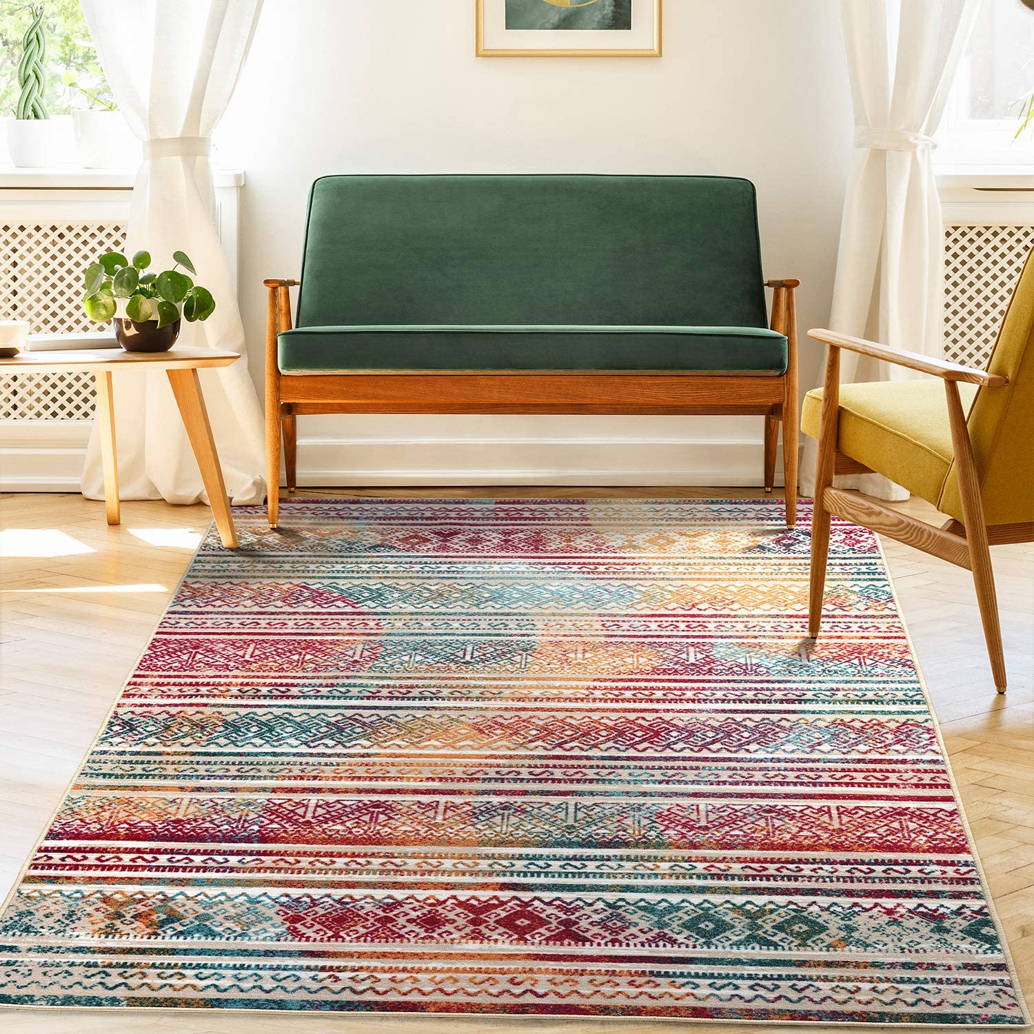 - VERSATILE GOOD LOOKS: Add a fashionable complement to a living room, dining room or bedroom with this versatile indoor area rug. With its classic color scheme and practical size, this area rug makes an attractive addition to any décor. This versatile area rug features a stylish color scheme and a bold, eye-catching pattern that will effortlessly complement any décor.