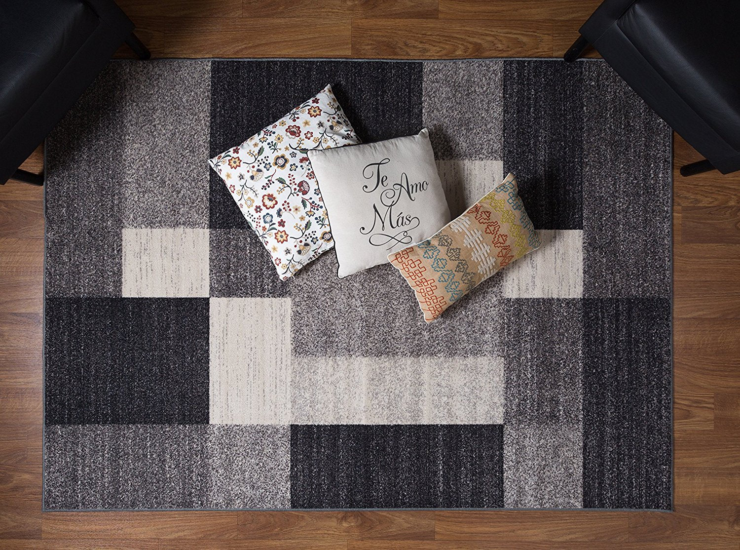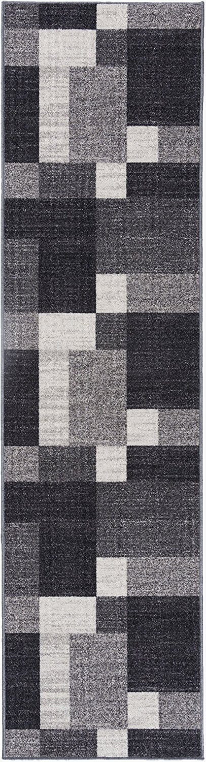 Box Pattern Gray/Grey Area Rug Non-Slip Non Skid