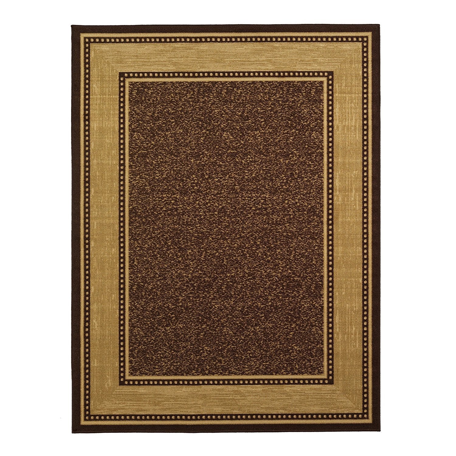 Brown Bordered Design Area Rug - Non-Slip/ No Skid