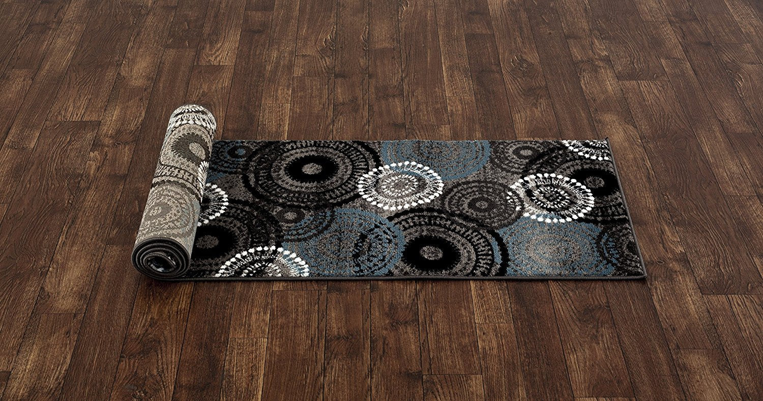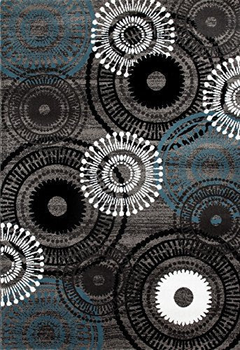 Contemporary Circles Gray/Grey Blue White Black Area Rug