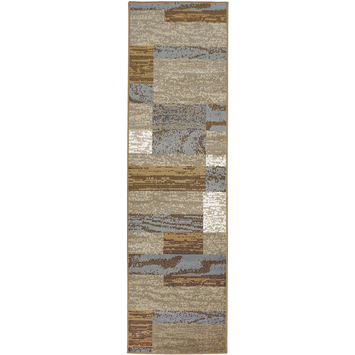 Geometric Brick Design Light Blue Beige Area Rug