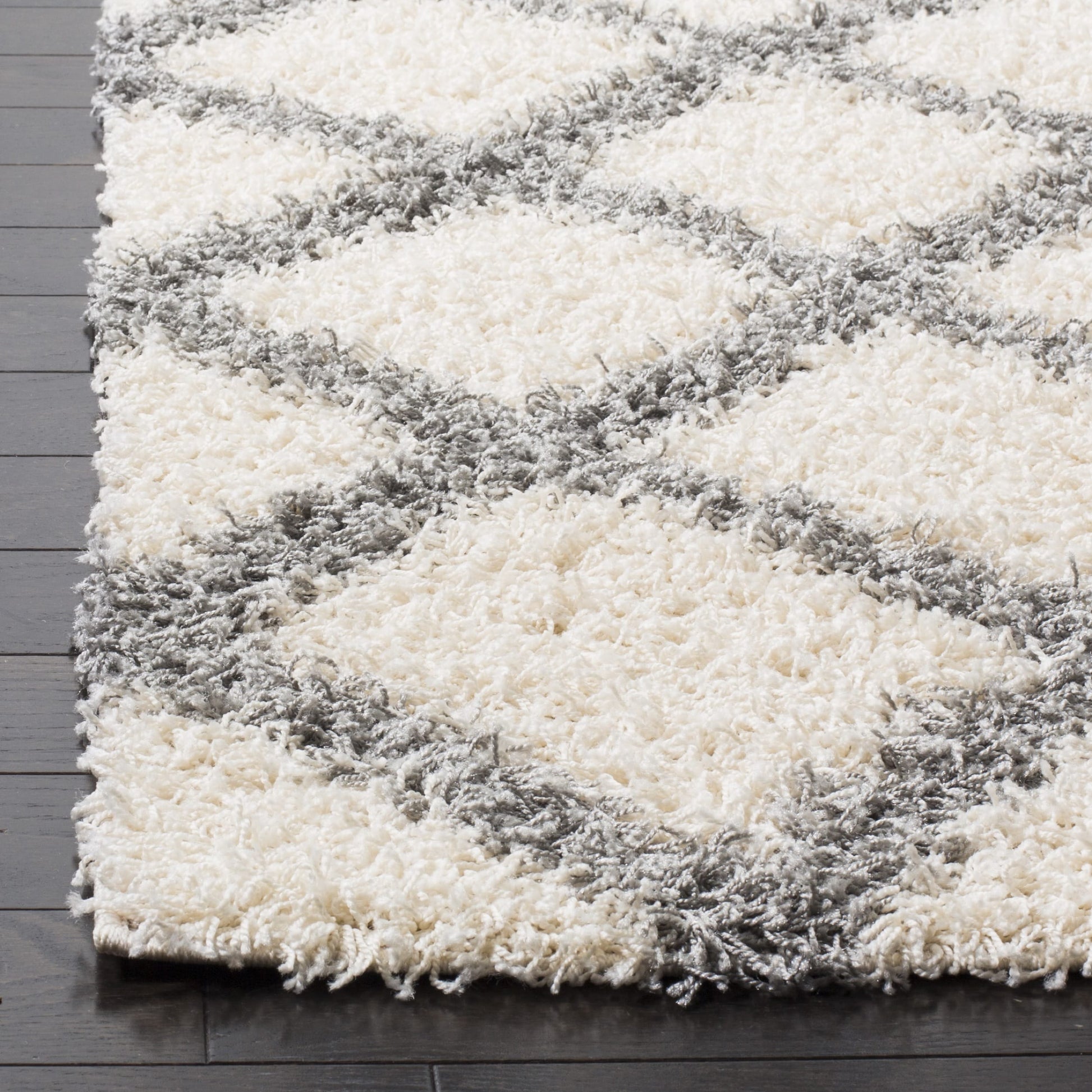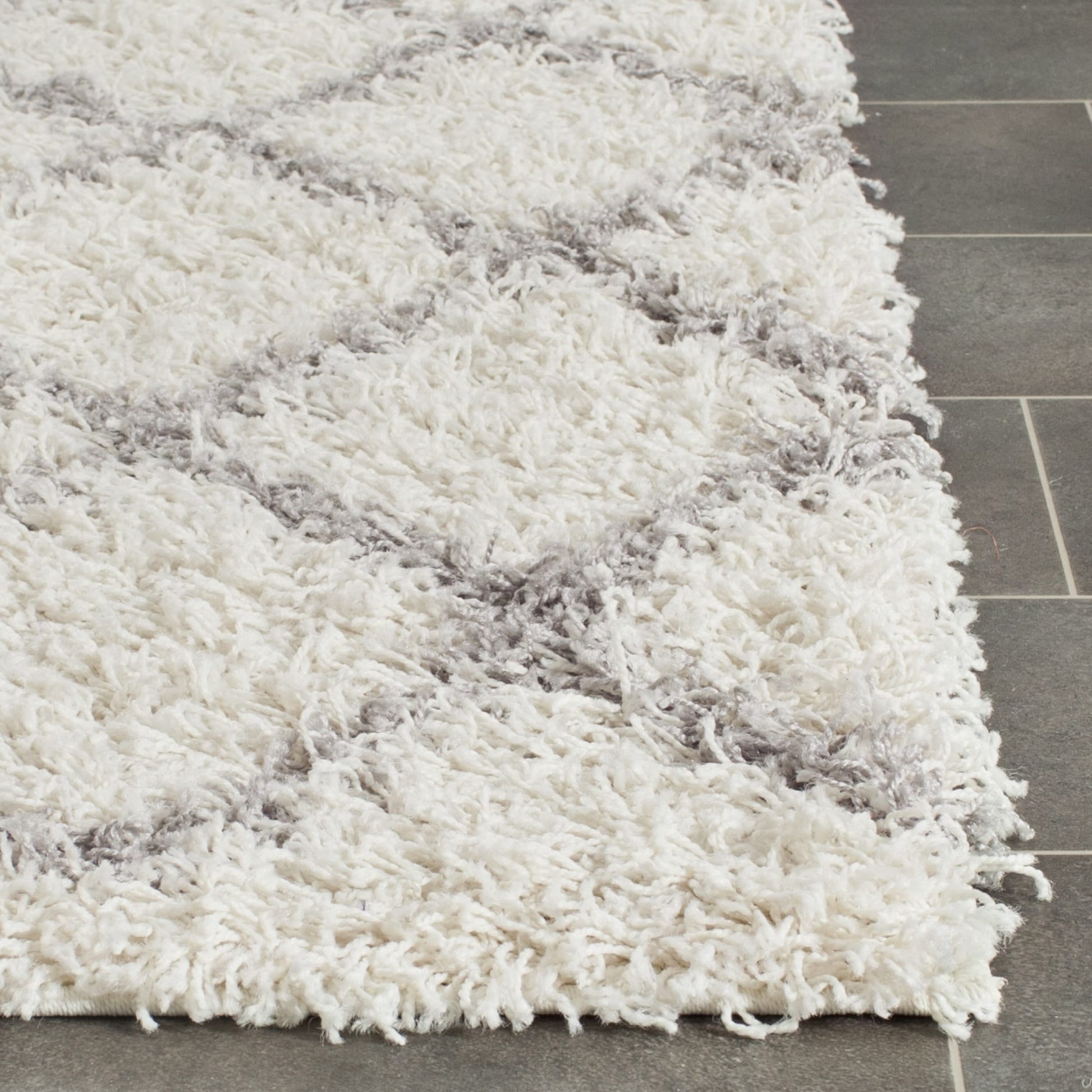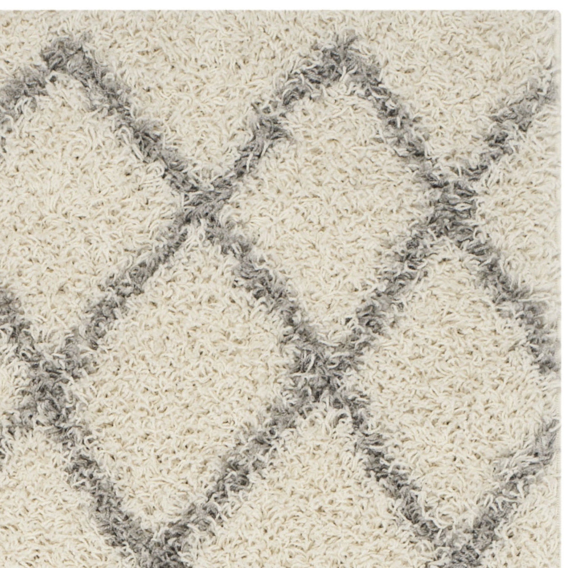 This collection is inspired by timeless shag designs crafted with the softest polypropylene available. This rug is crafted using a power-loomed construction with a polypropylene pile and features main accent color of ivory.The fashionable Moroccan tile look is fresh in this Shag rug with ivory patterning on a grey shag texture. Power-loomed of easy care polypropylene, this organic-looking shag rug is crafted with a soft pile for plush comfort underfoot.