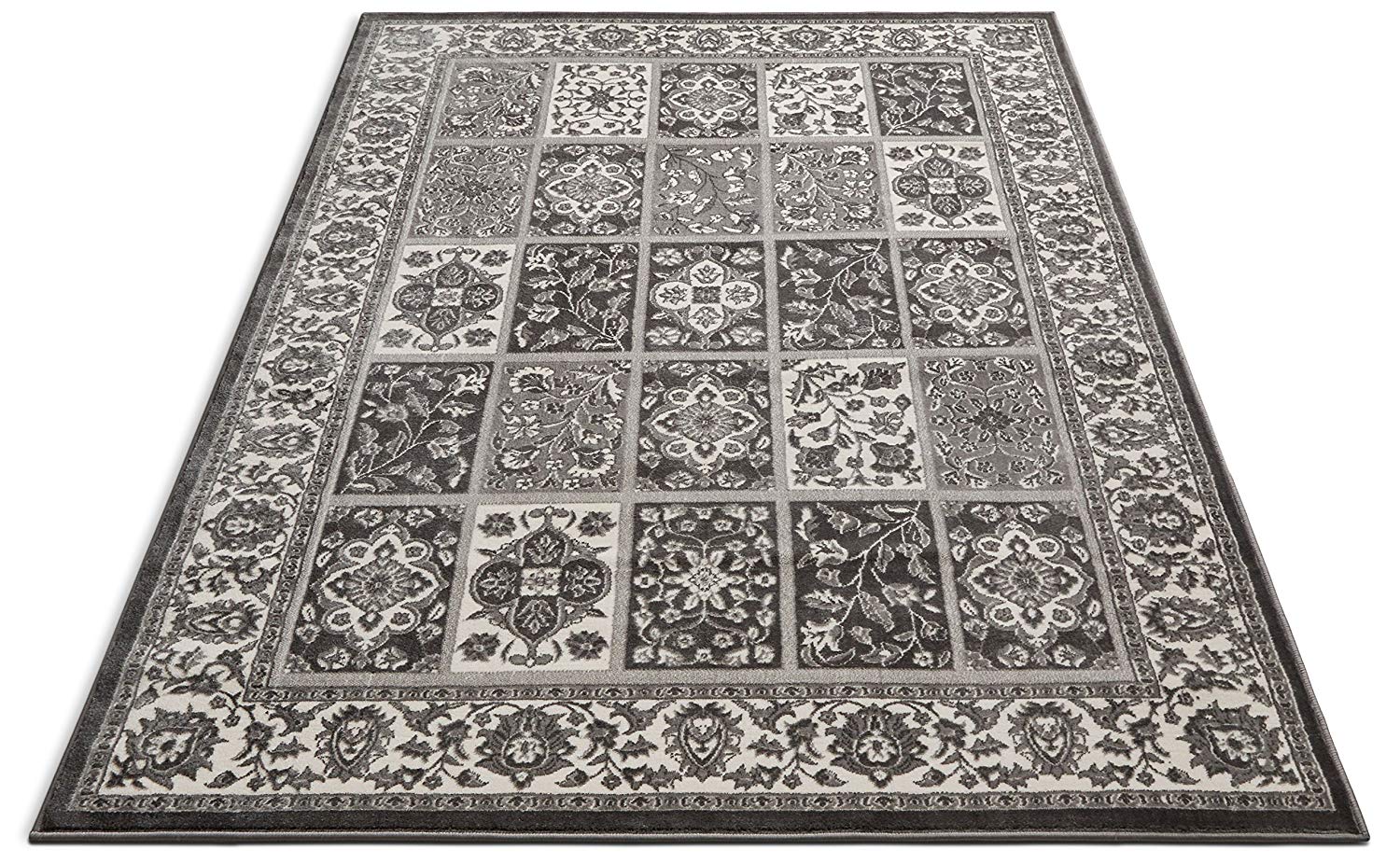 Modern Floral Panel Persian Design Grey Ivory Area Rug