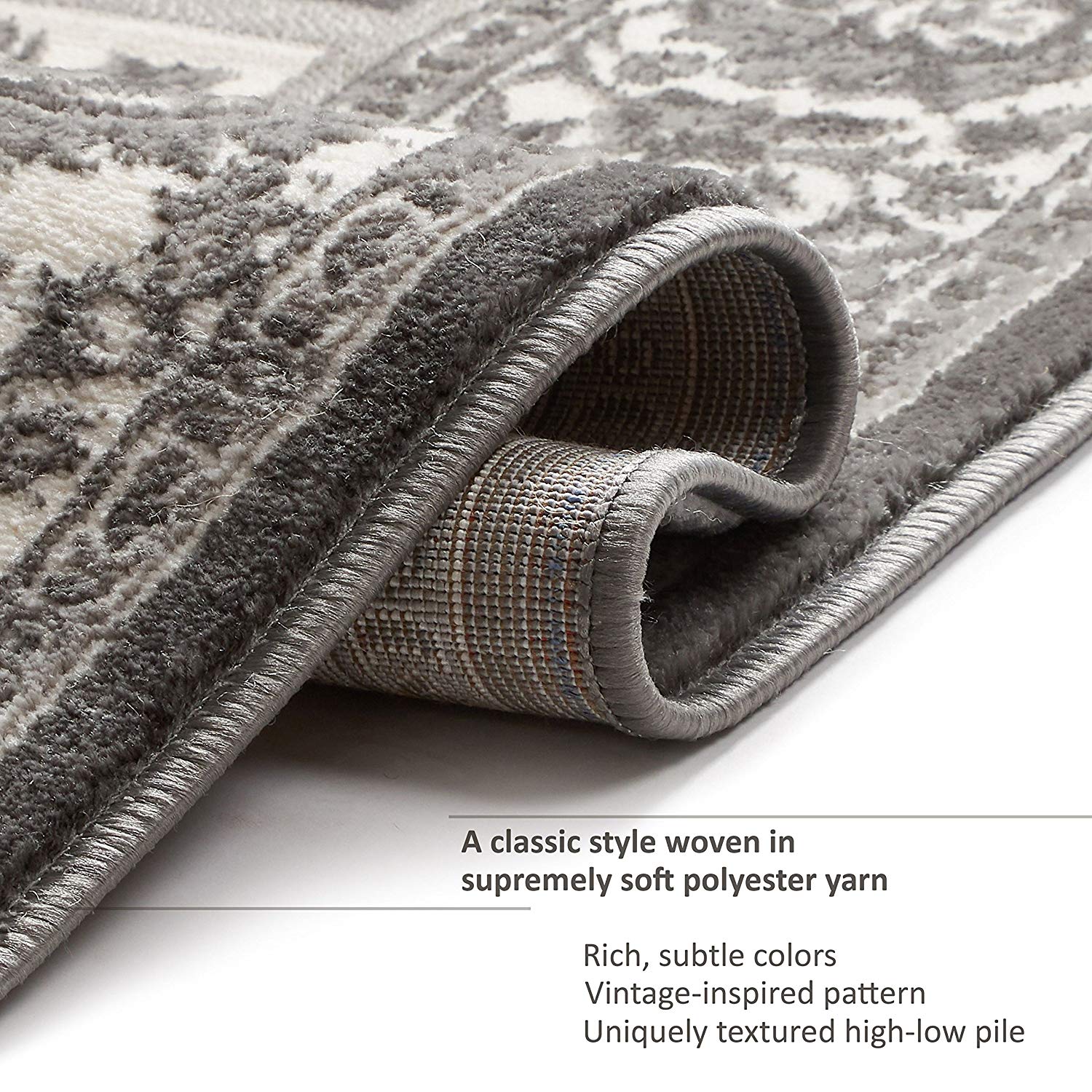 Rug is a classic Persian panel pattern woven in modern, contemporary colors of grey and ivory.