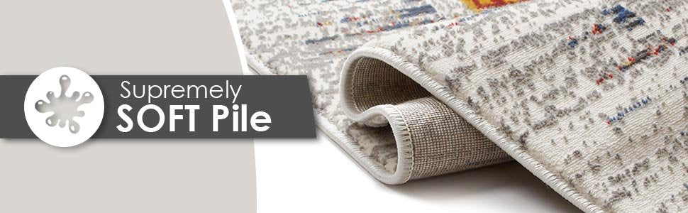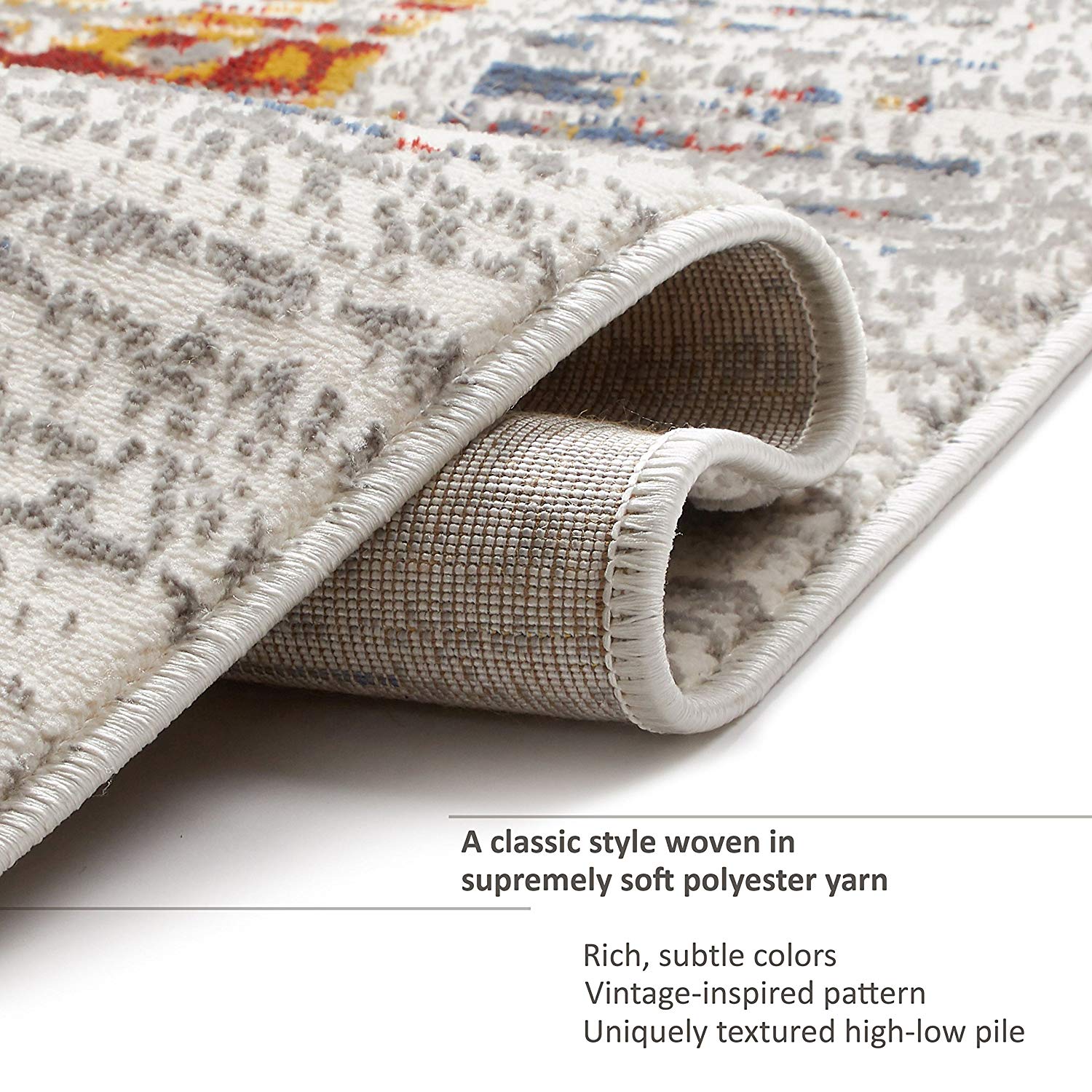 - Sleek, soft 0.3" pile. 100% polyester with shrink yarn for a uniquely textured high-low effect. Stain and fade resistant, and with a jute backing that is safe for wood floors.