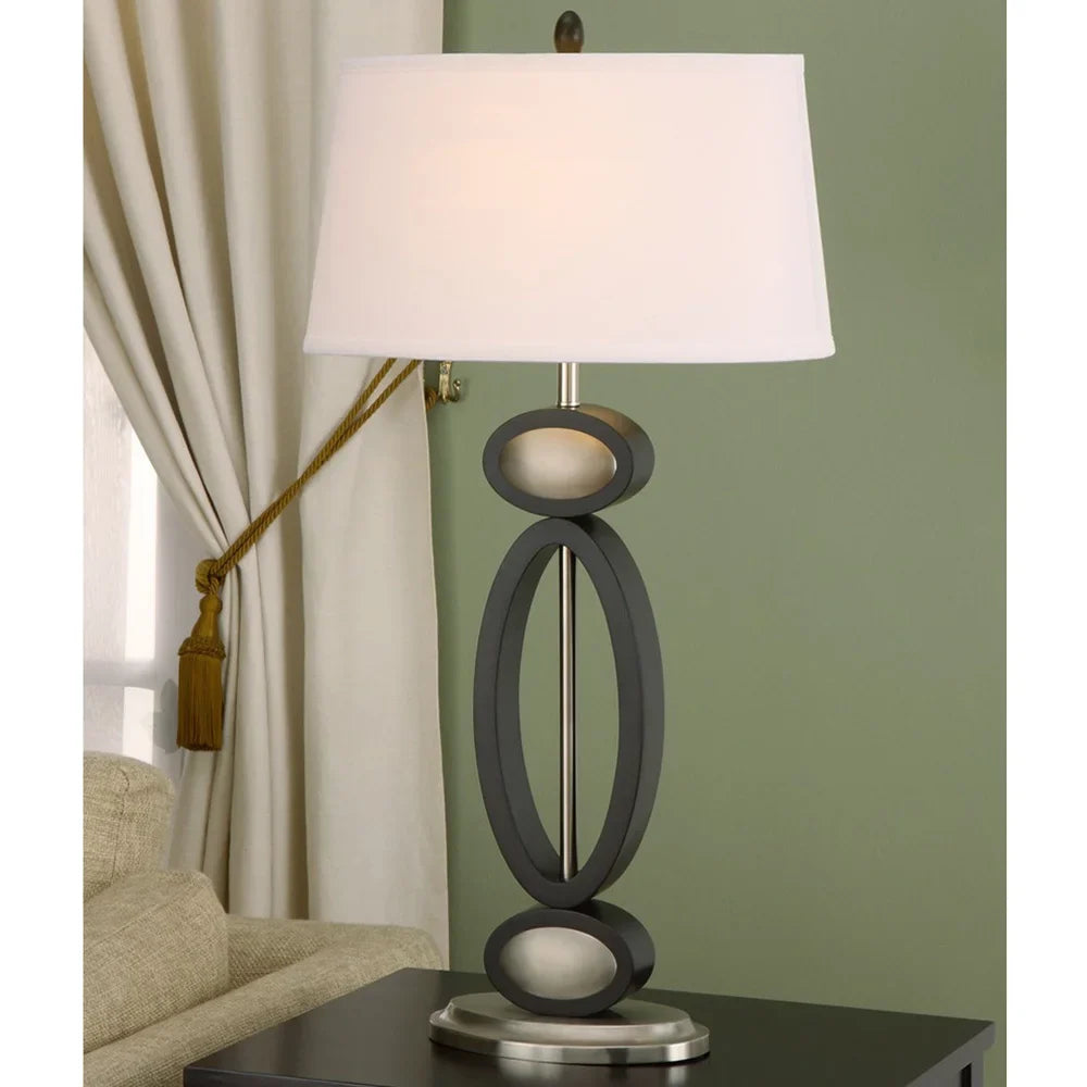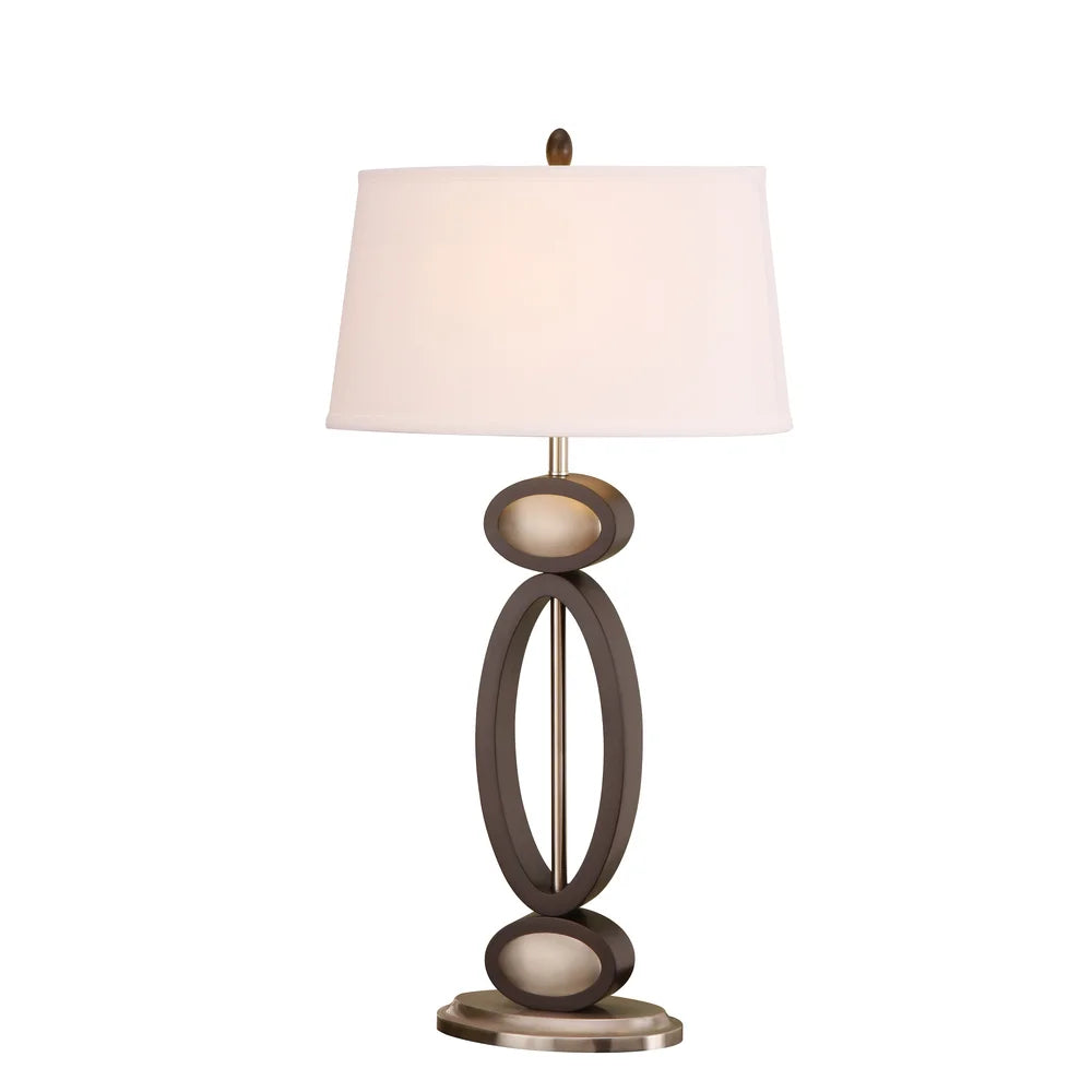 Bring a touch of class to any room with this contemporary Infinity table lamp from Artiva USA. Made of metal and wood in a two-tone brushed steel and dark walnut finish, this stylish and modern lamp set is the perfect addition to any home or office.