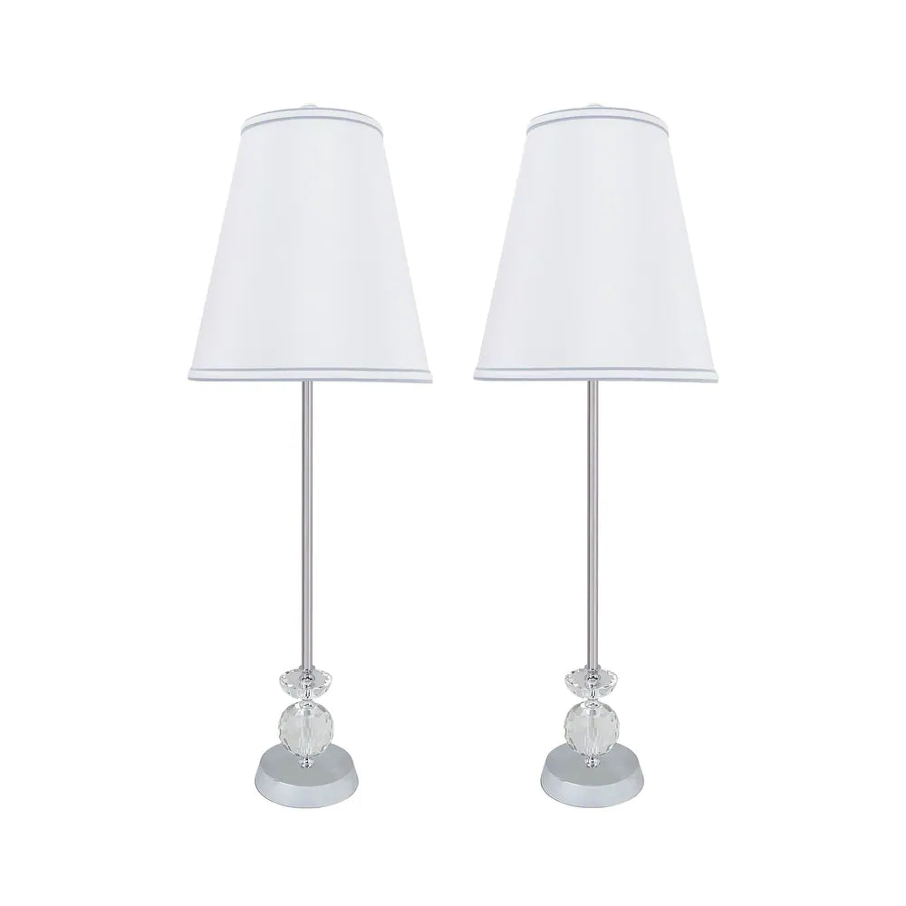Aspen Creative 2 Pack Set - 30" High Metal & Crystal Table Lamp Chrome Finish and Hardback Empire Lamp Shade Off White 10" Wide