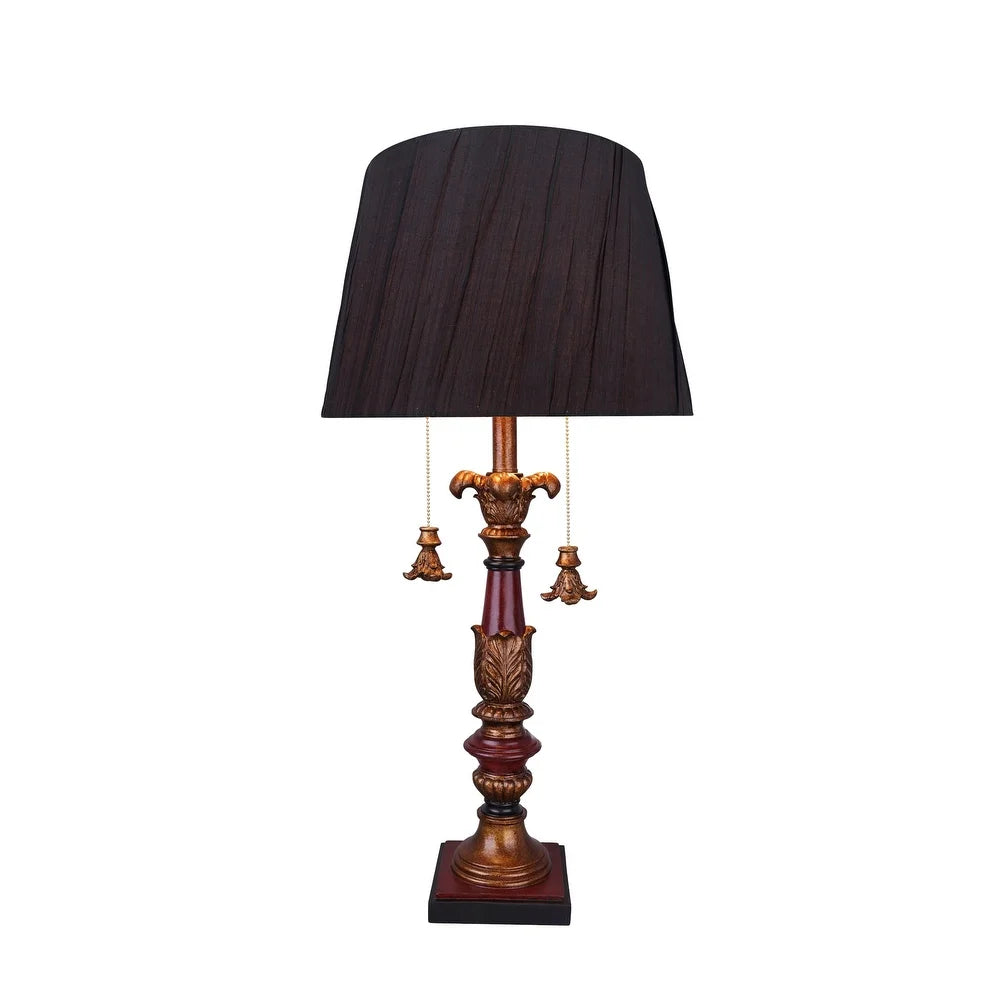 Aspen Creative 33" High Metal & Resin Table Lamp, Antique Red & Gold and Empire Shaped Lamp Shade Black, 15" Wide