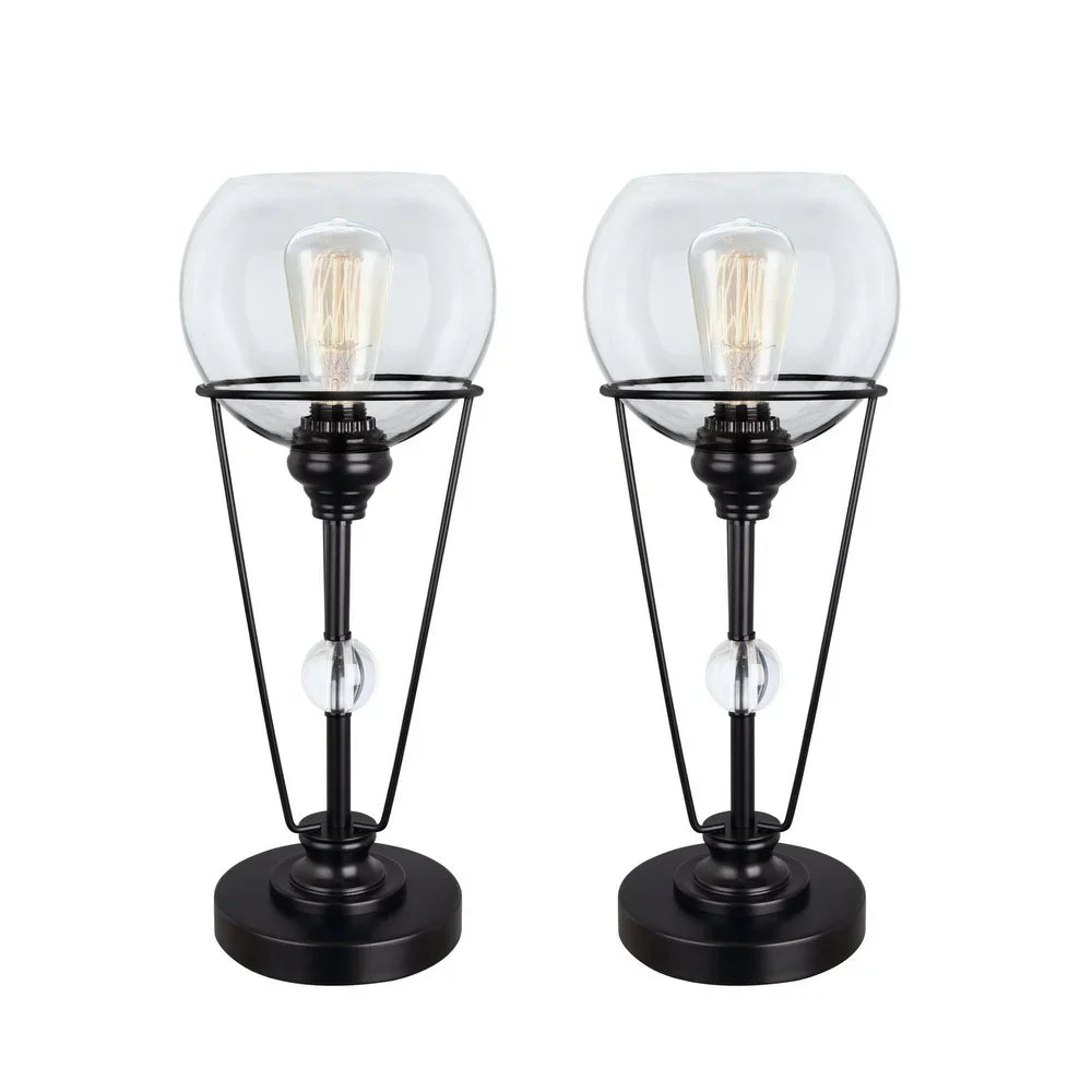 Aspen Creative Two Pack, 18-1/4" High Transitional Metal & Glass Table Lamp, Matte Black and Clear Glass Shade, 7-1/4" Wide