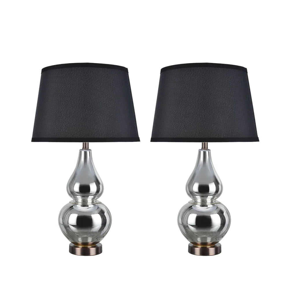 Aspen Creative Two Pack Set 26" High Glass Table Lamp, Mercury with Antique Red Copper Base and Hardback Empire Lamp Shade Black