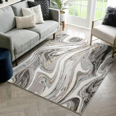 Beckley Contemporary Abstract Waves Ivory Glam Rug