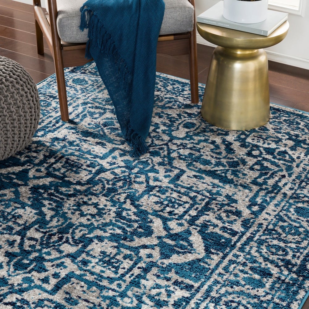 The lovely collection features a Persian inspired medallion pattern in a beautiful blend of sky blue, navy, light Grey, and white. Gorgeous and soft, this rug features a comfortable pile with minimal shedding. Great for high-traffic areas. Machine made in Turkey with 100% polypropylene. Spot or professionally clean only. Rug pad recommended.