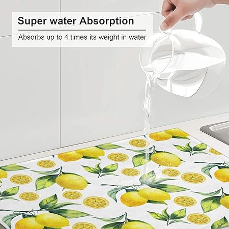 - ABSORBENT MATERIAL: Crafted with microfiber, this drying mat absorbs moisture quickly and efficiently. Say goodbye to wet countertops and hello to a clean and dry kitchen workspace