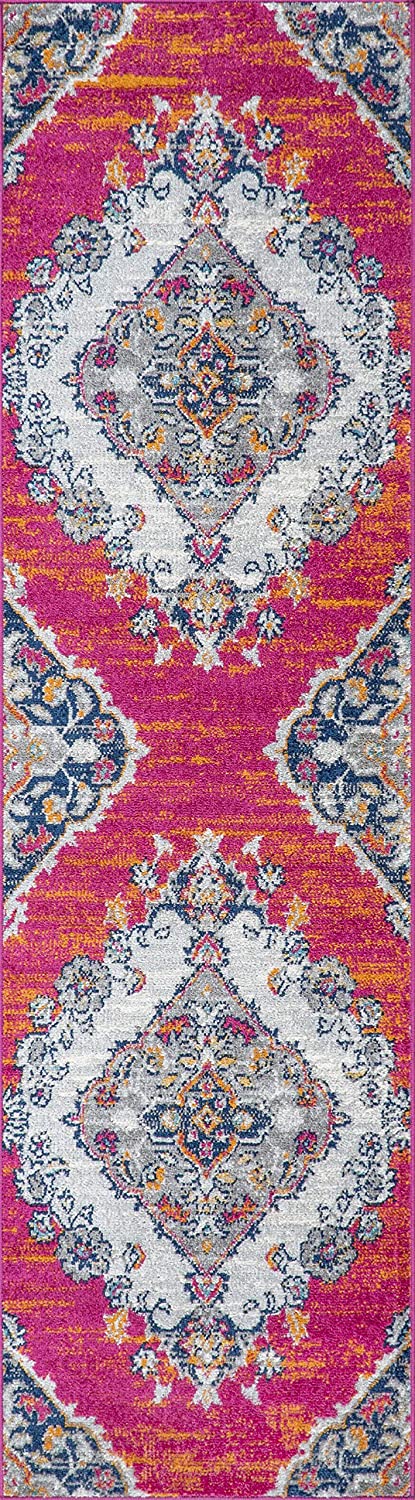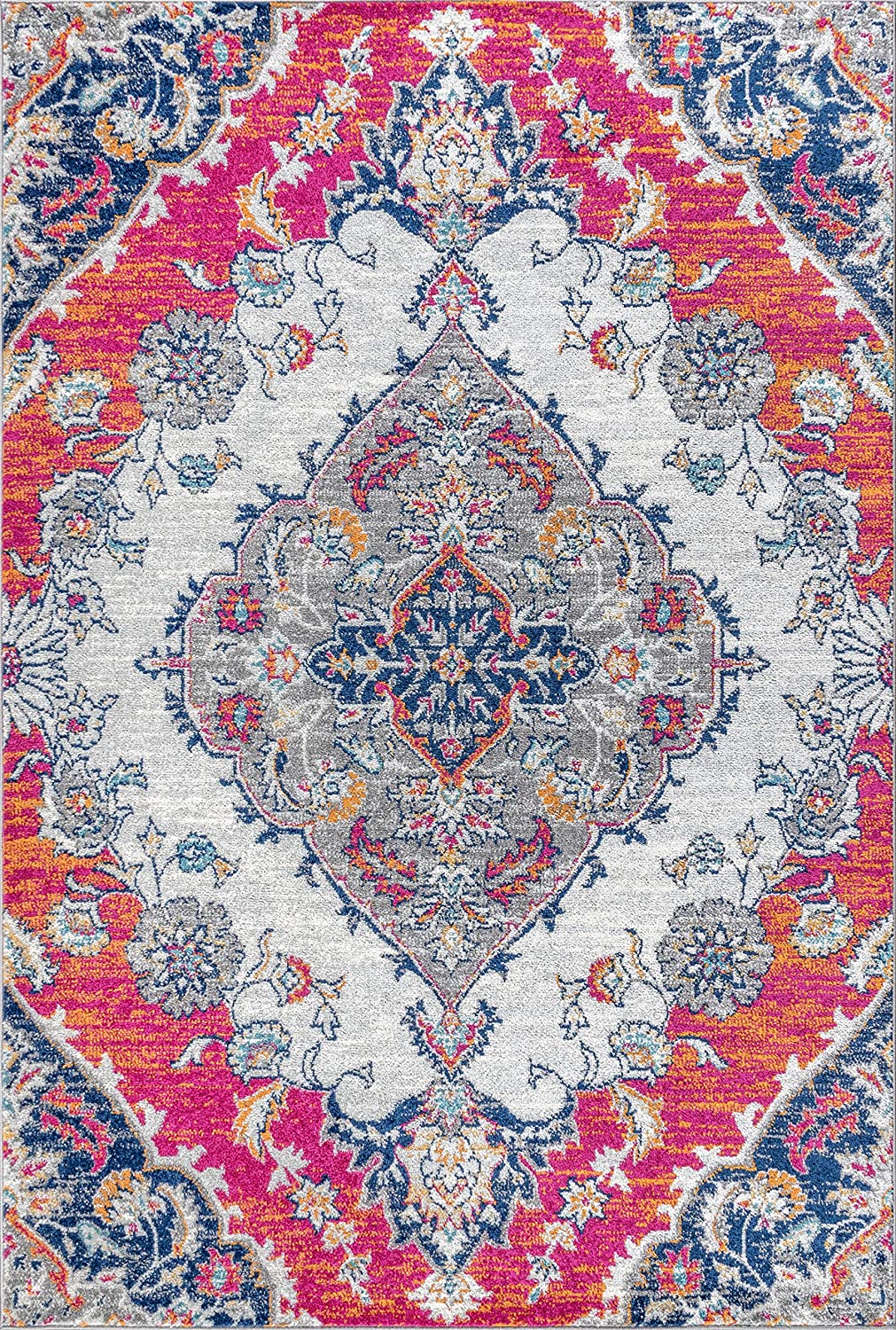 - Combining tones of coral, pink, and gray, This rug is a versatile addition to any color scheme