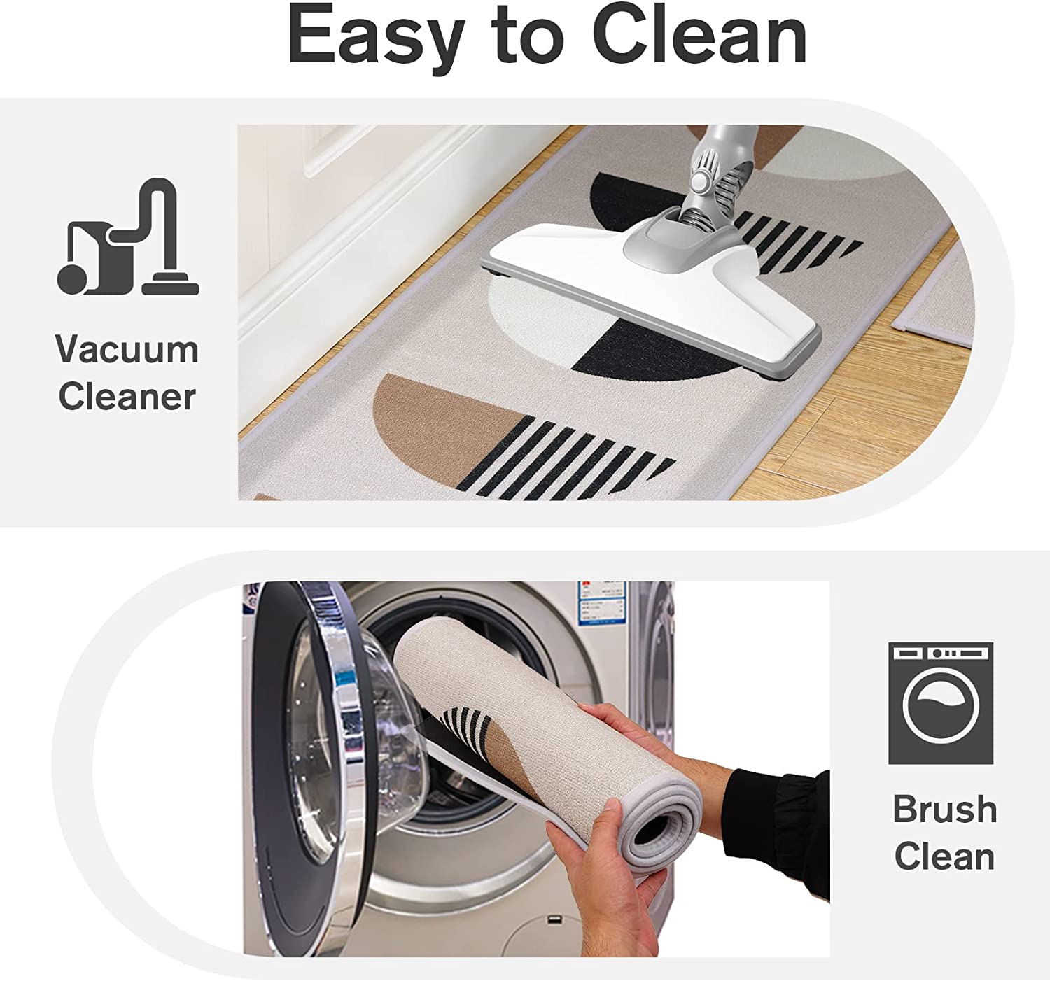 - Kitchen Rugs Washable:Simply vacuum with a hand-held vacuum, sweep with a hose to rinse the doormat. For a deeper clean, machine washed and dried! Don't worry about fiber falling, fiber locking technology ensures that this door rug will be machine-washable many times.