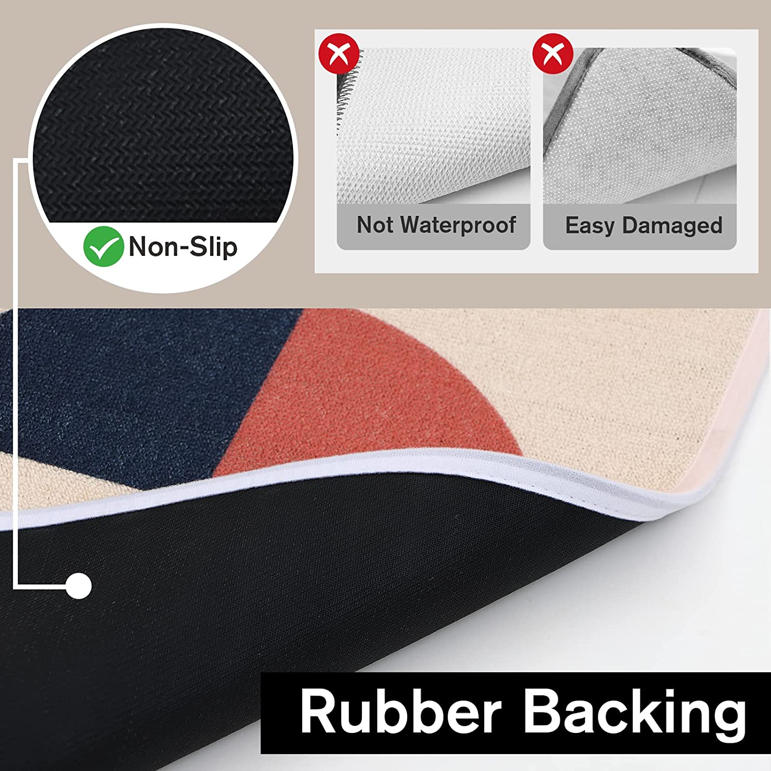 - Skid Resistant & Steady:The high quality rubber backing increases the friction between the kitchen mat and the floor. It's light and the grip effect can keep the kitchen mat fixed and non-slip during use. Kitchen floor mat will not decompose and compress over time.