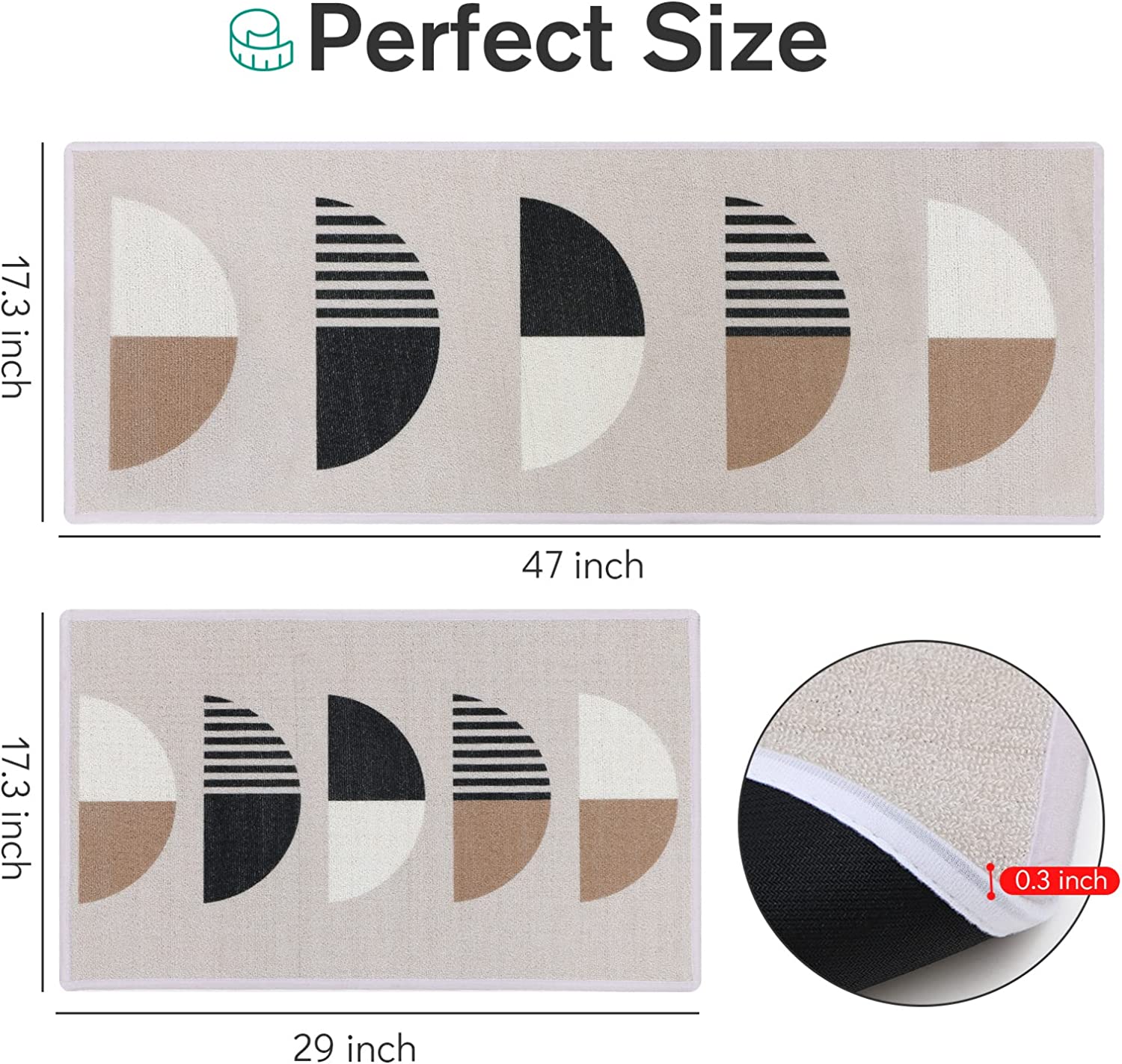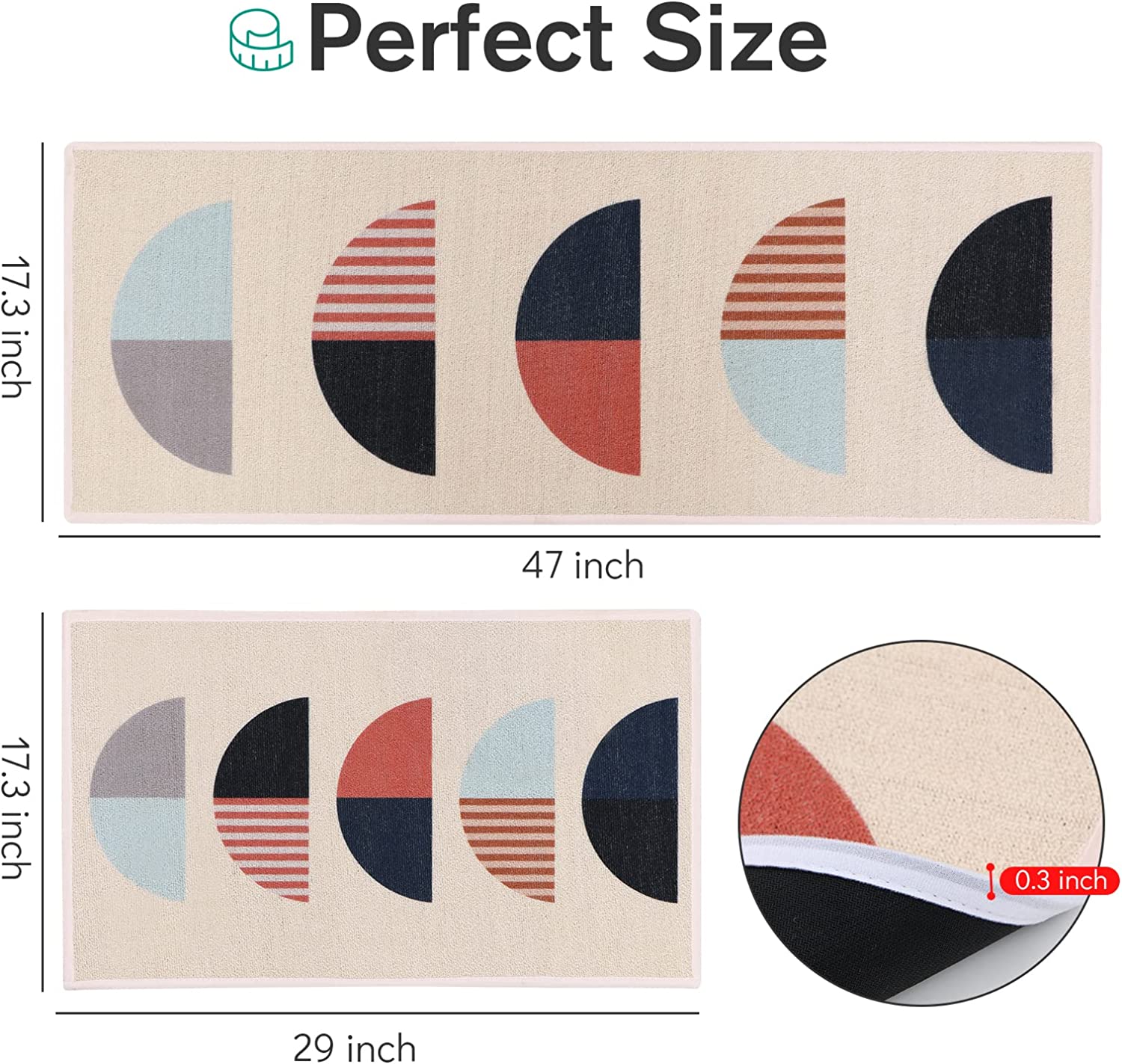 - Suitable Size:The boho kitchen mat set of 2 include size 17.3''×30''and17.3"x47" .This kitchen runner mats provide an extra large area for standing in laundry, kitchen, office,in front of sink, entrance or any other high-traffic indoor or outdoor space. Perfect gift for friends !