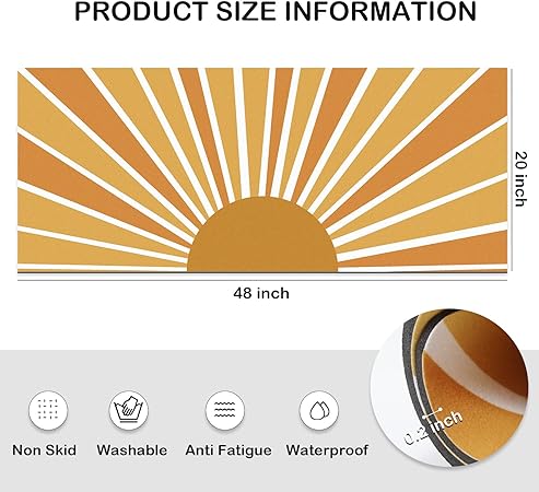 - KITCHEN MAT SIZE: The large kitchen runner rug measures 20"x48" and has a thickness of 0.2 inches, which makes it functional without obstructing doorways. The low profile design ensures it won't get in the way while providing comfort and support. This size is perfect for most kitchen and provides ample coverage.