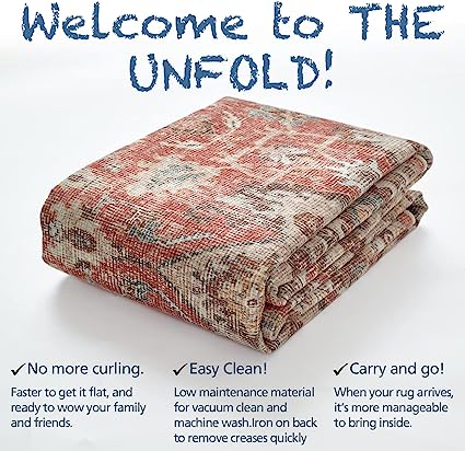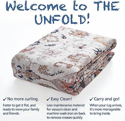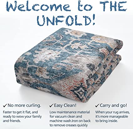 - Easy Care: Please unfold the rug when you receive it. There will be creases at the beginning, please don't worry. Use your hand to gently smooth them out, flatten them on the floor and walk around, the creases will relax within a week.