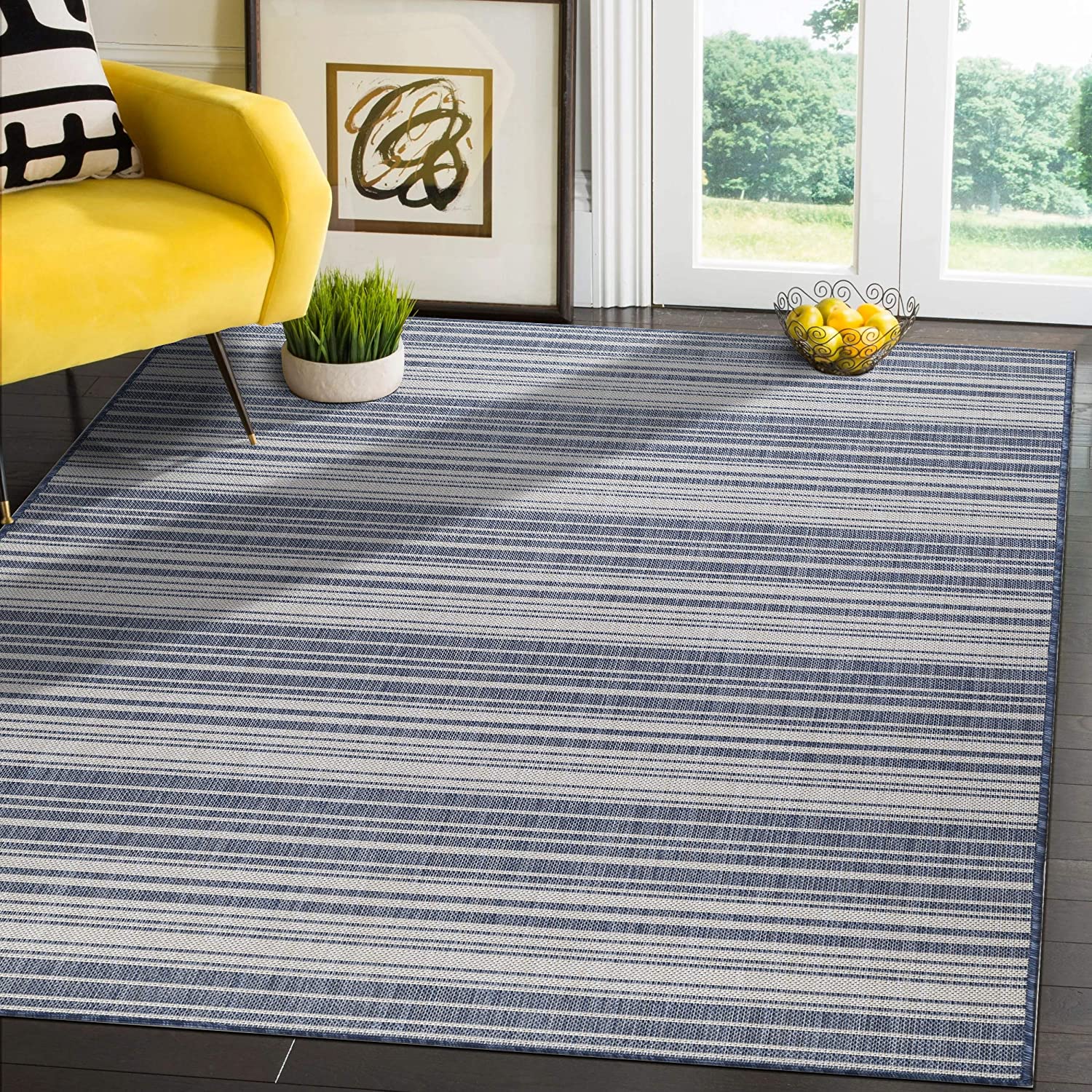 Modern Area Rugs for Indoor Outdoor Stripes - Blue / White