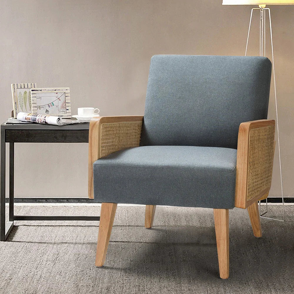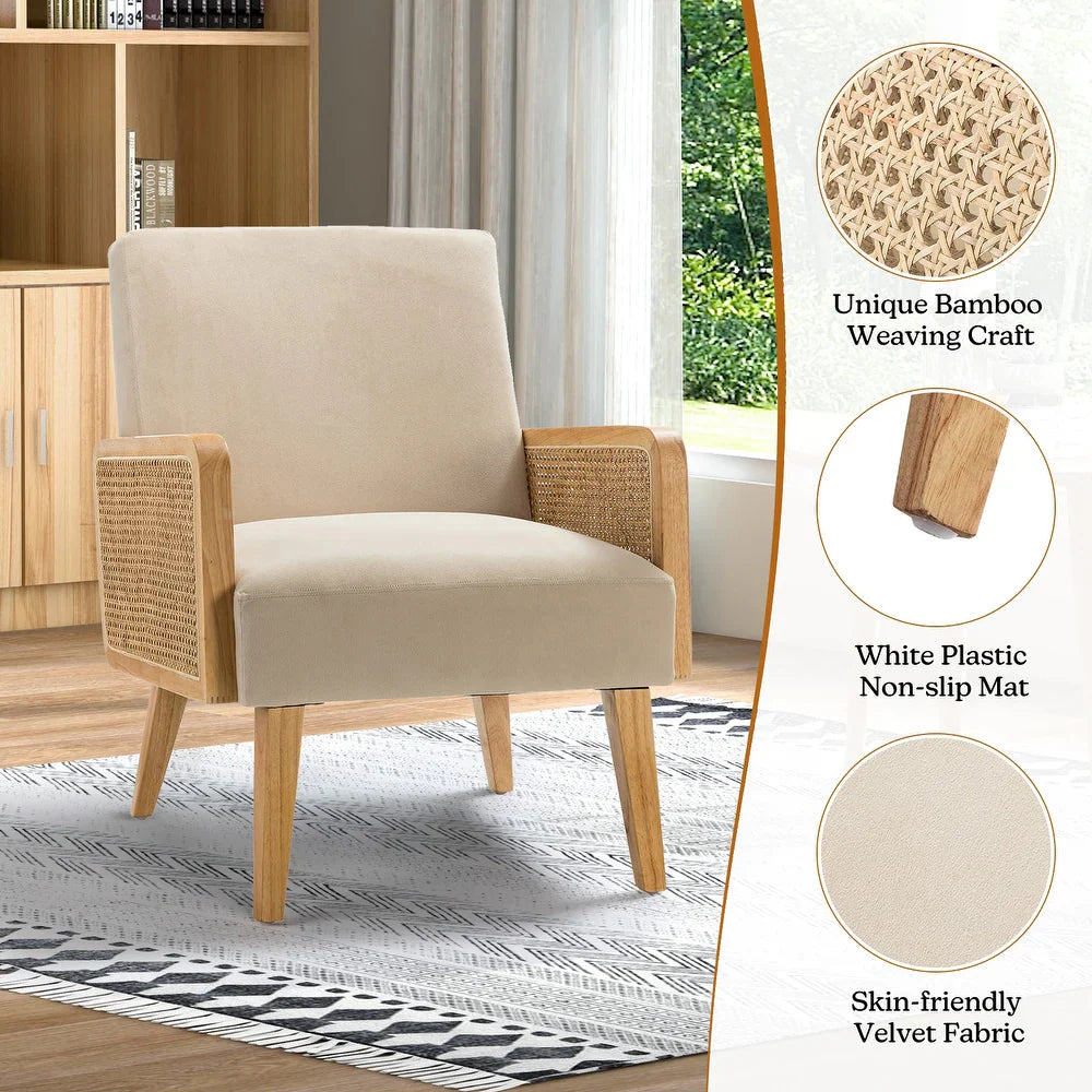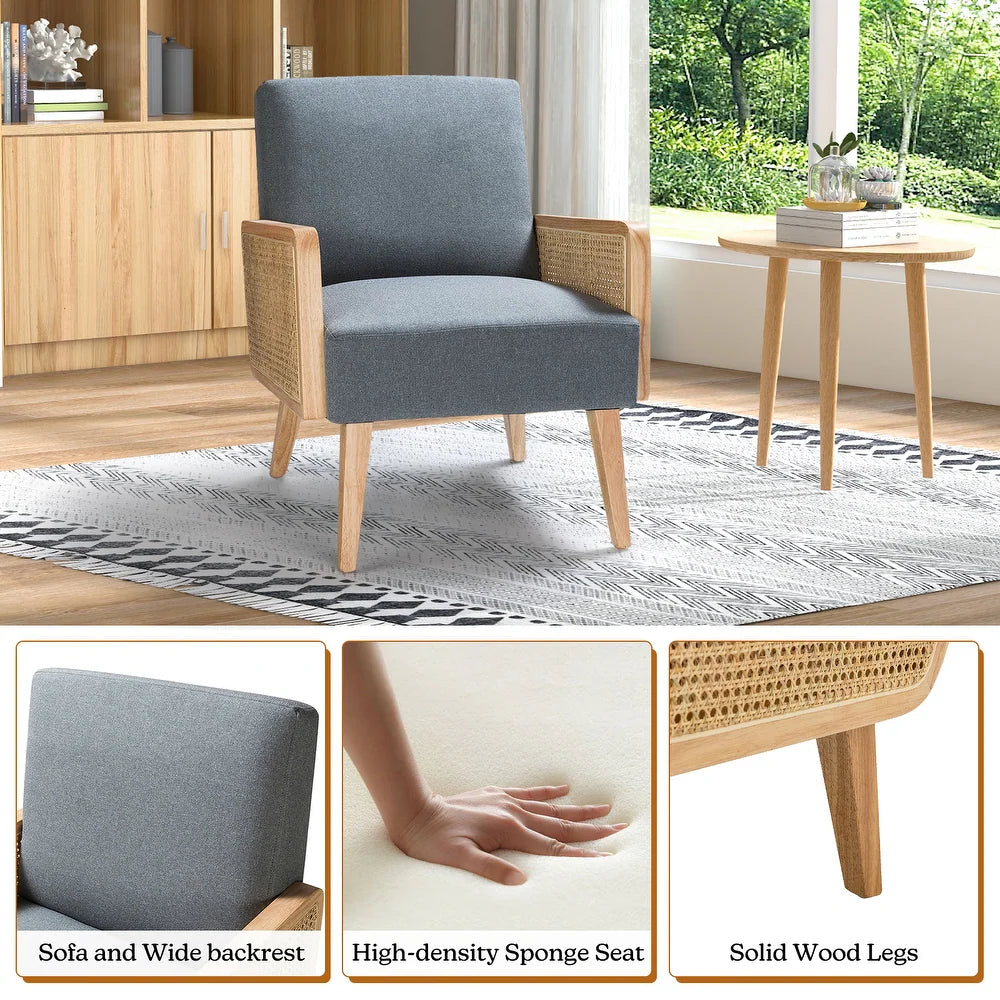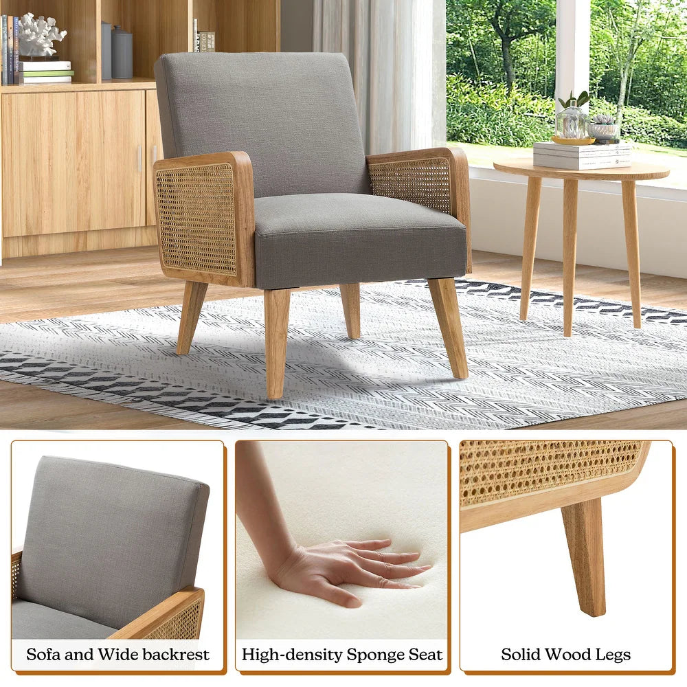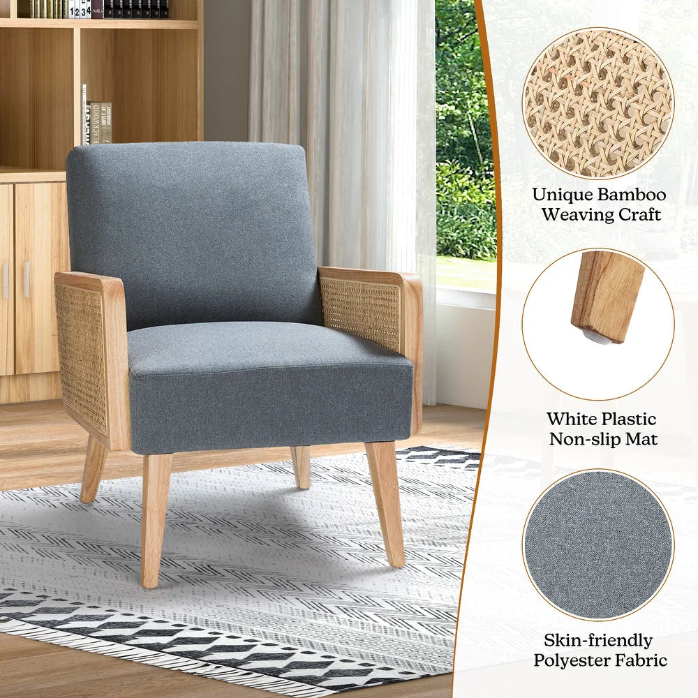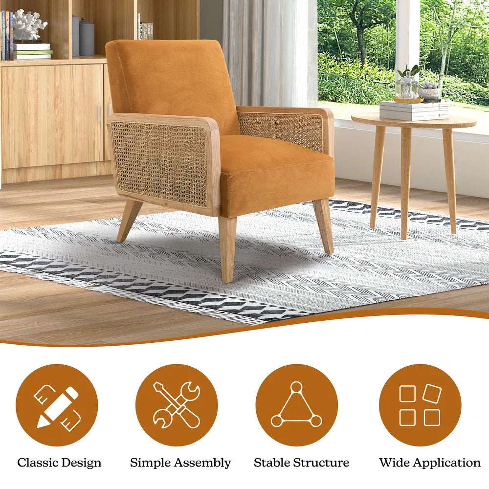 Carmina Upholstered Accent Chair with Natural Rattan Arms