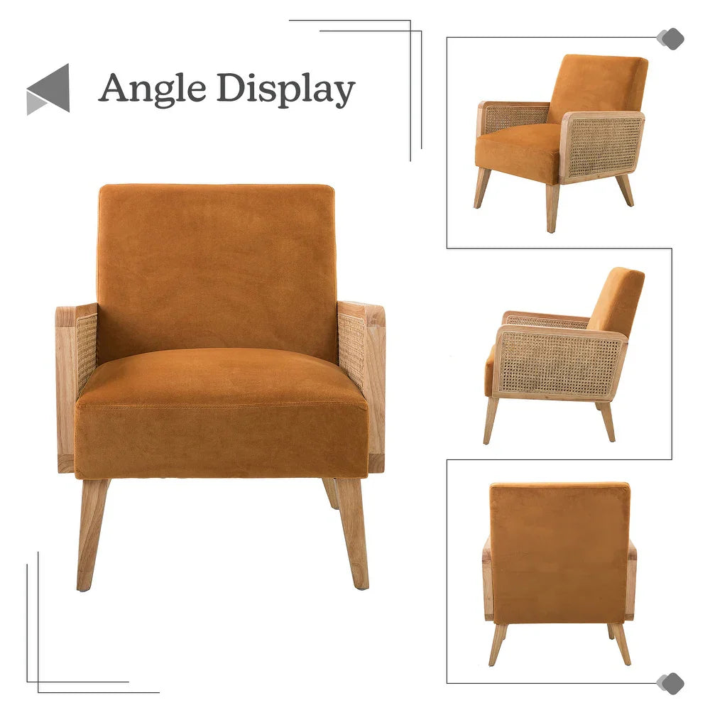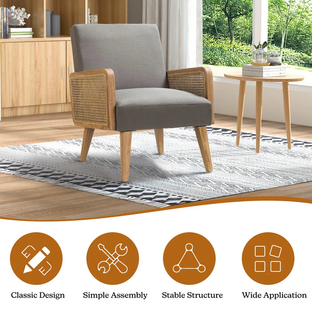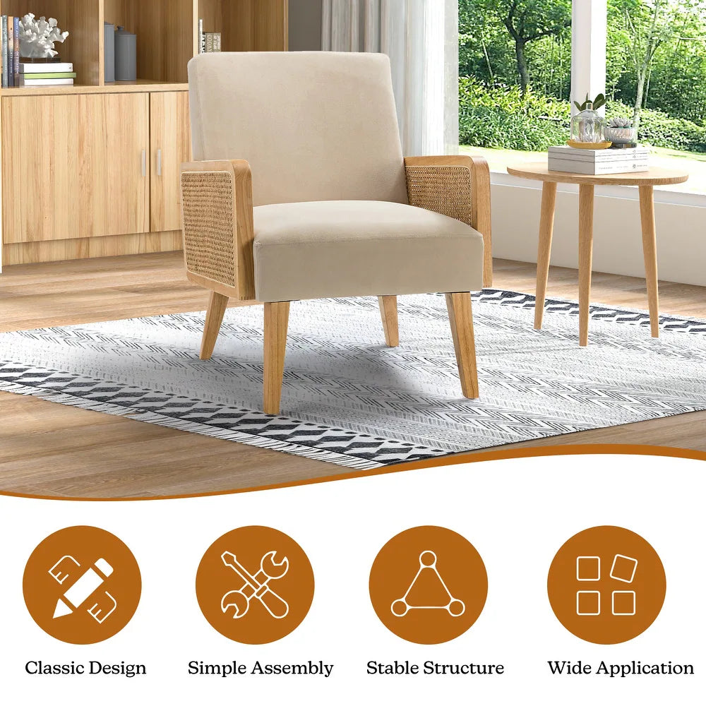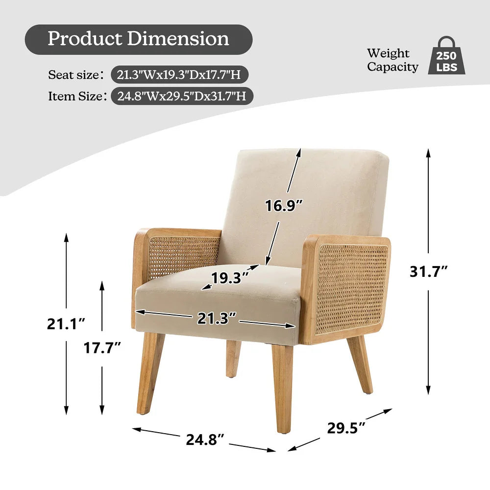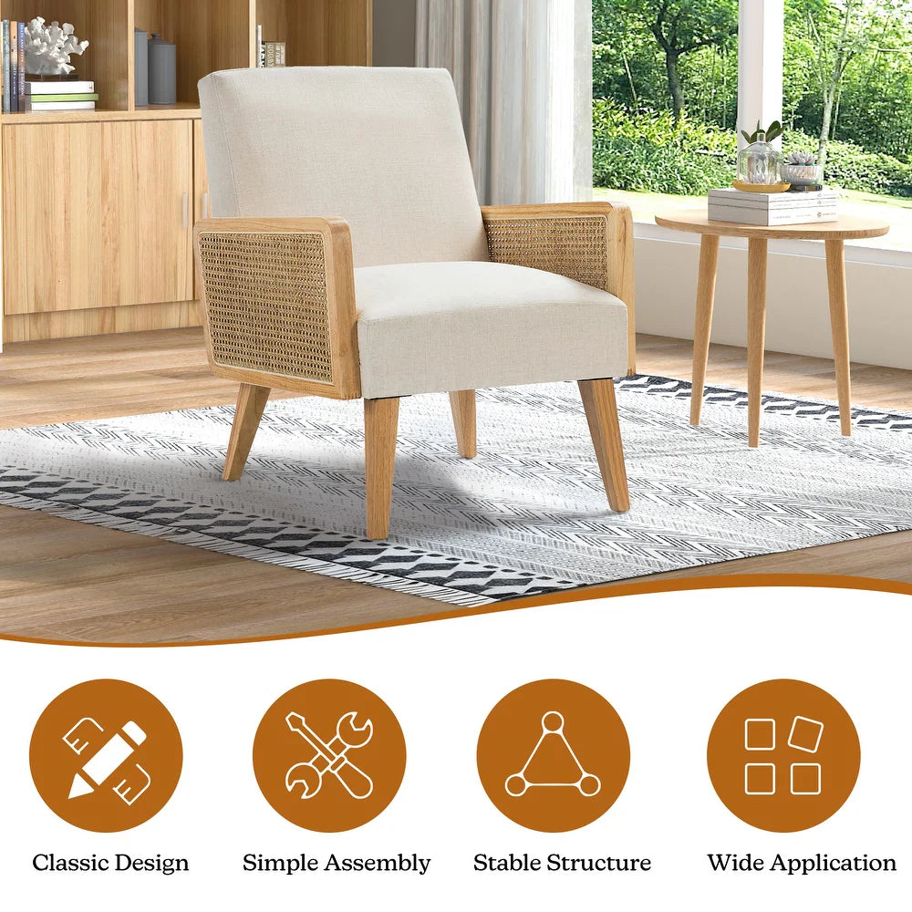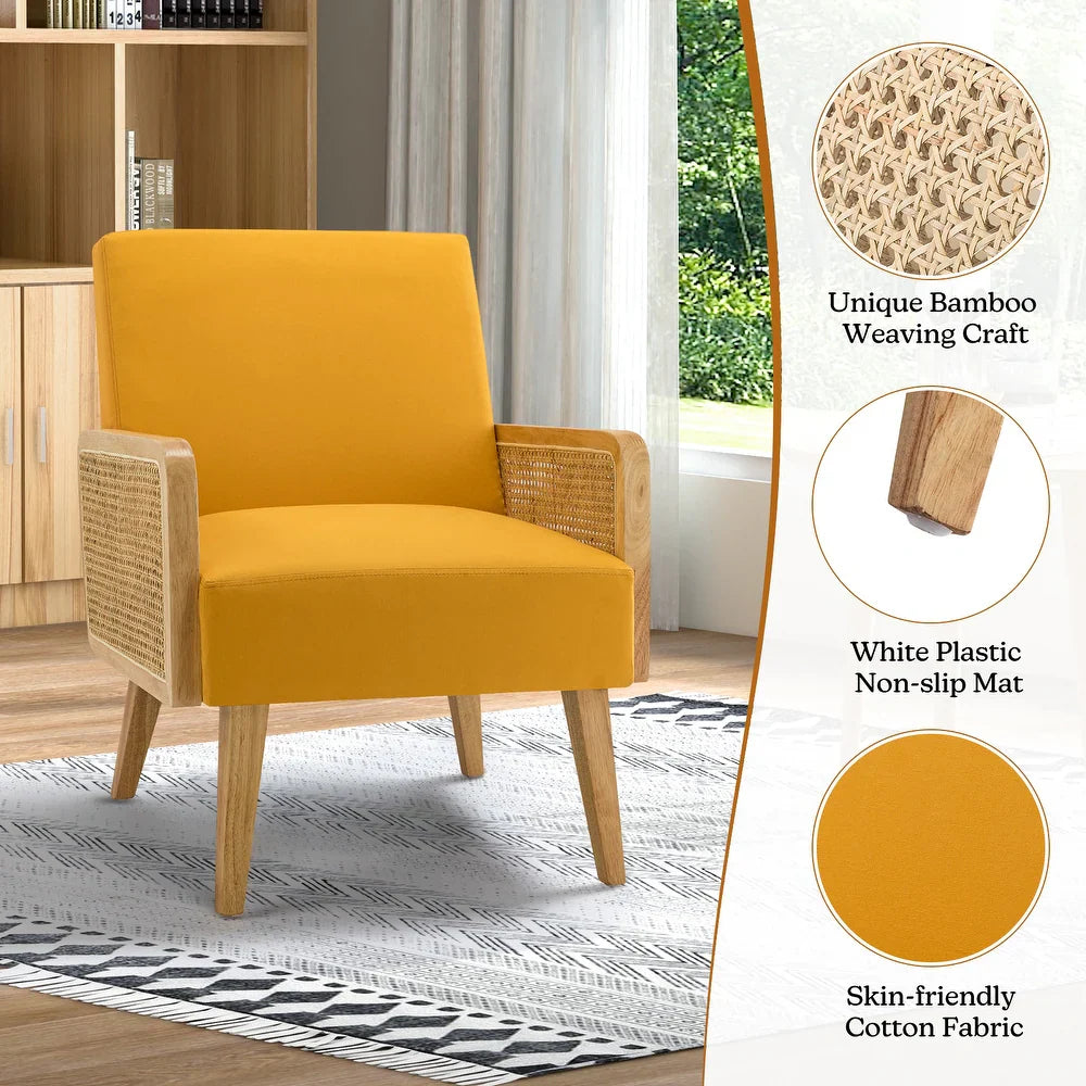 Carmina Upholstered Accent Chair with Natural Rattan Arms
