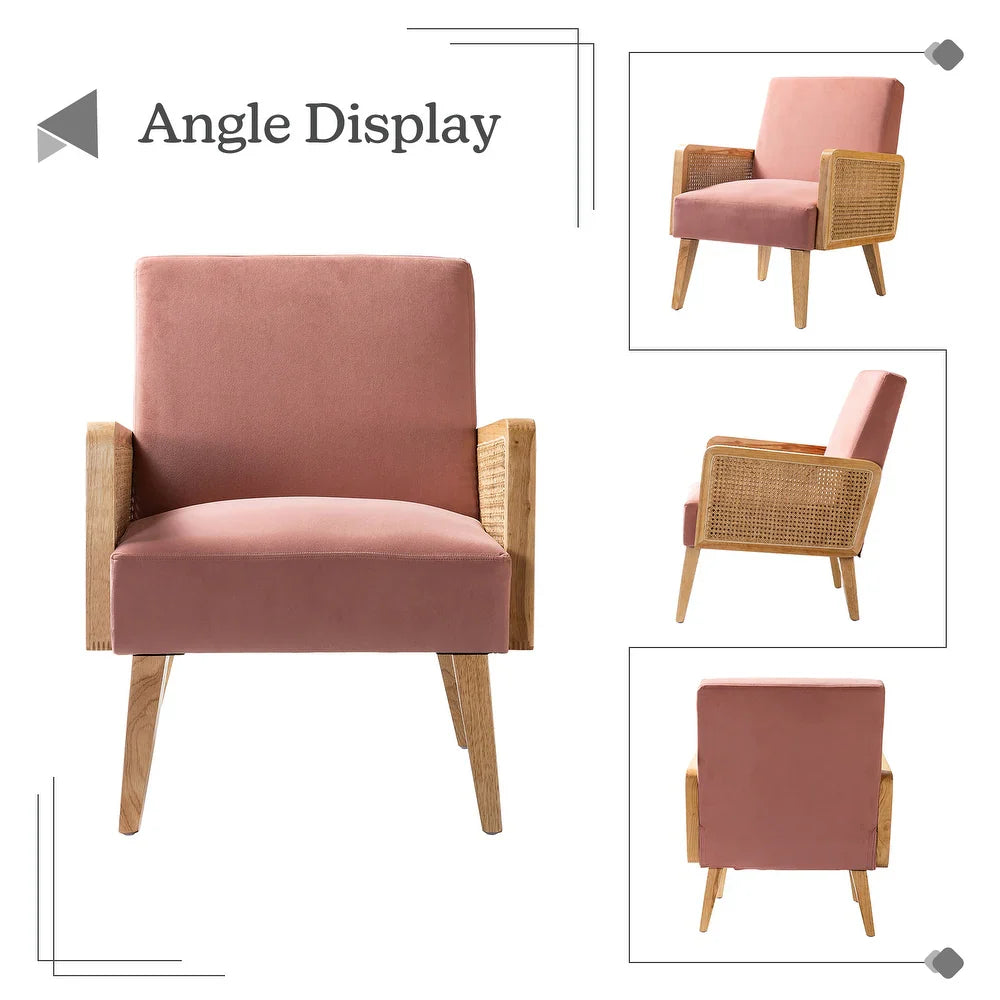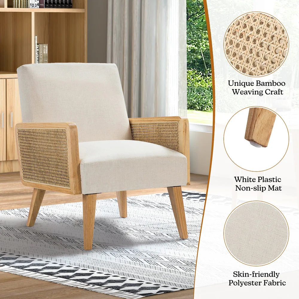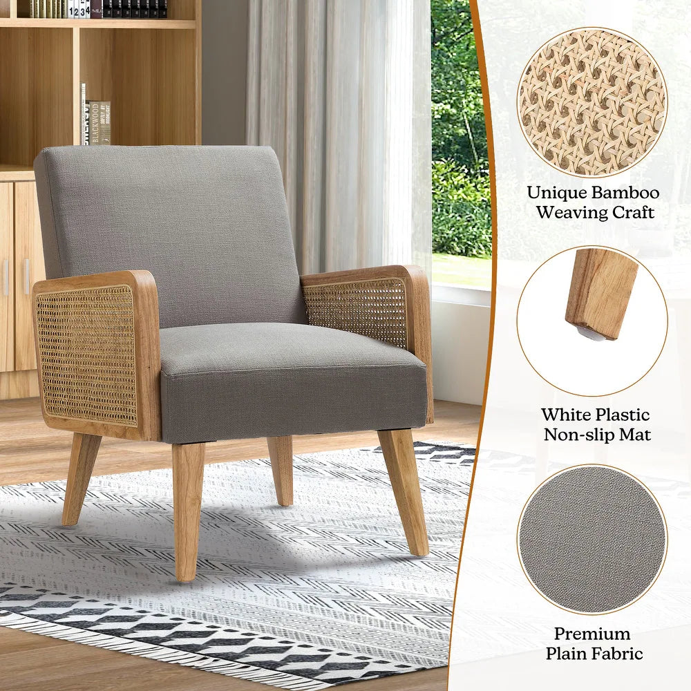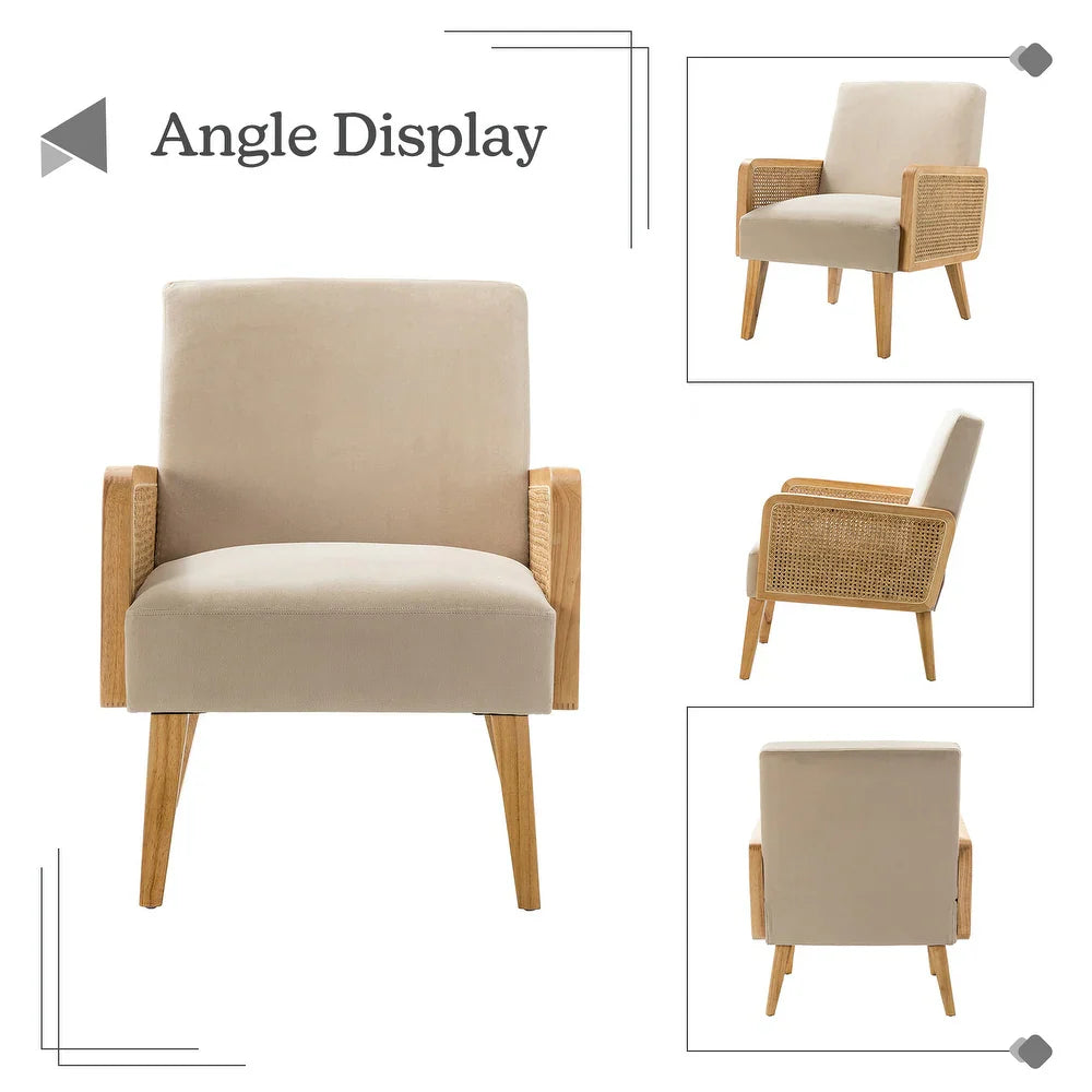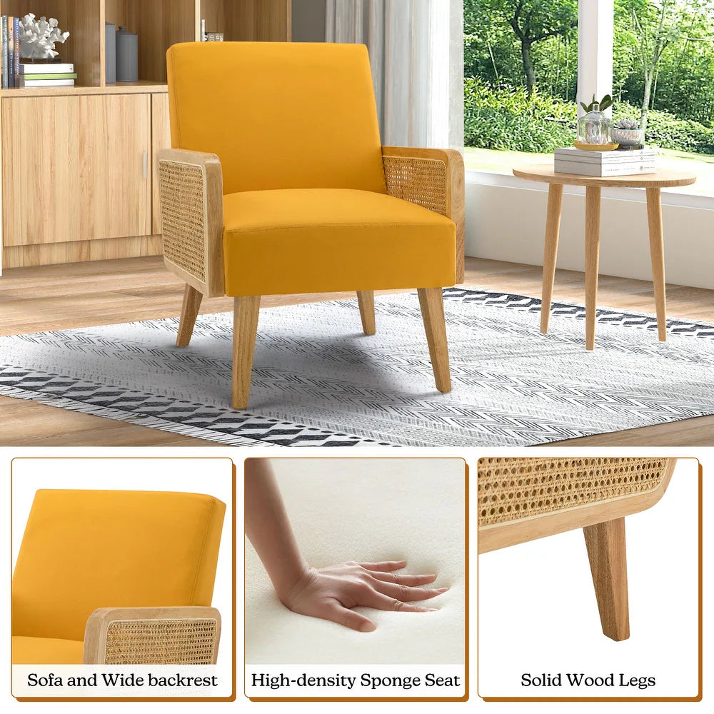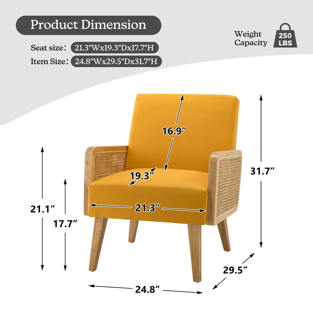 Carmina Upholstered Accent Chair with Natural Rattan Arms