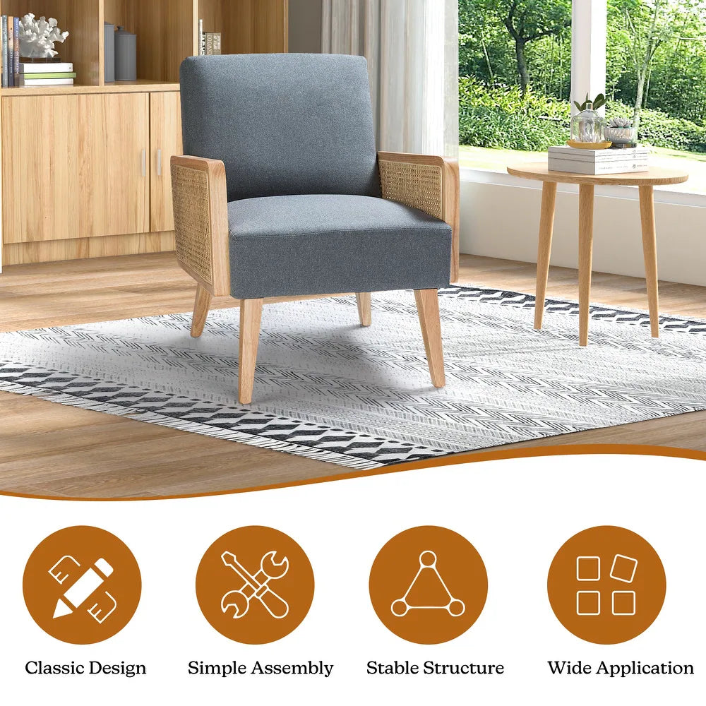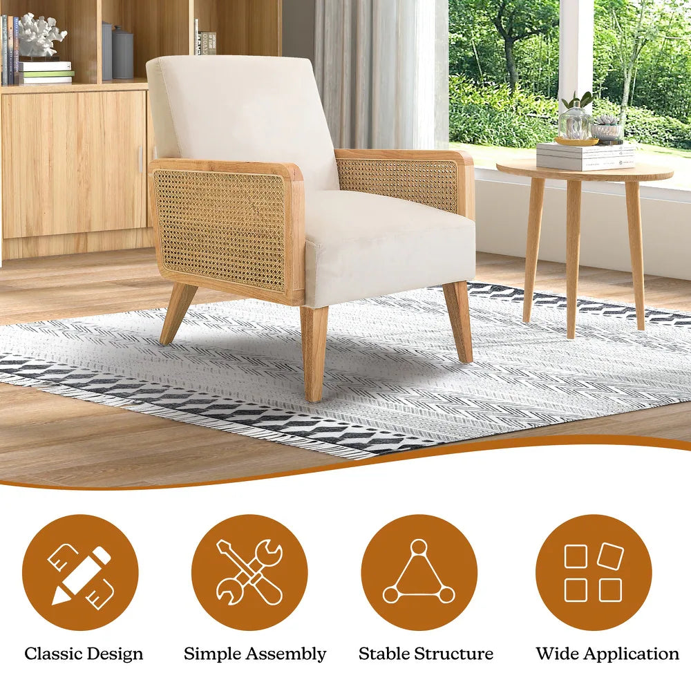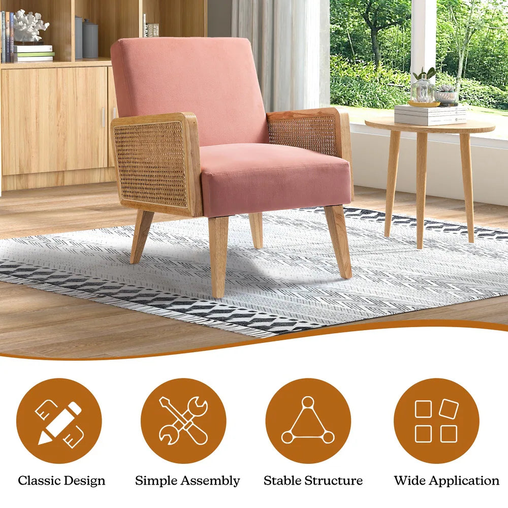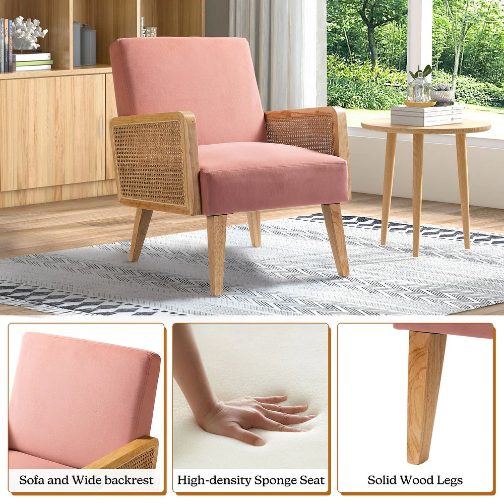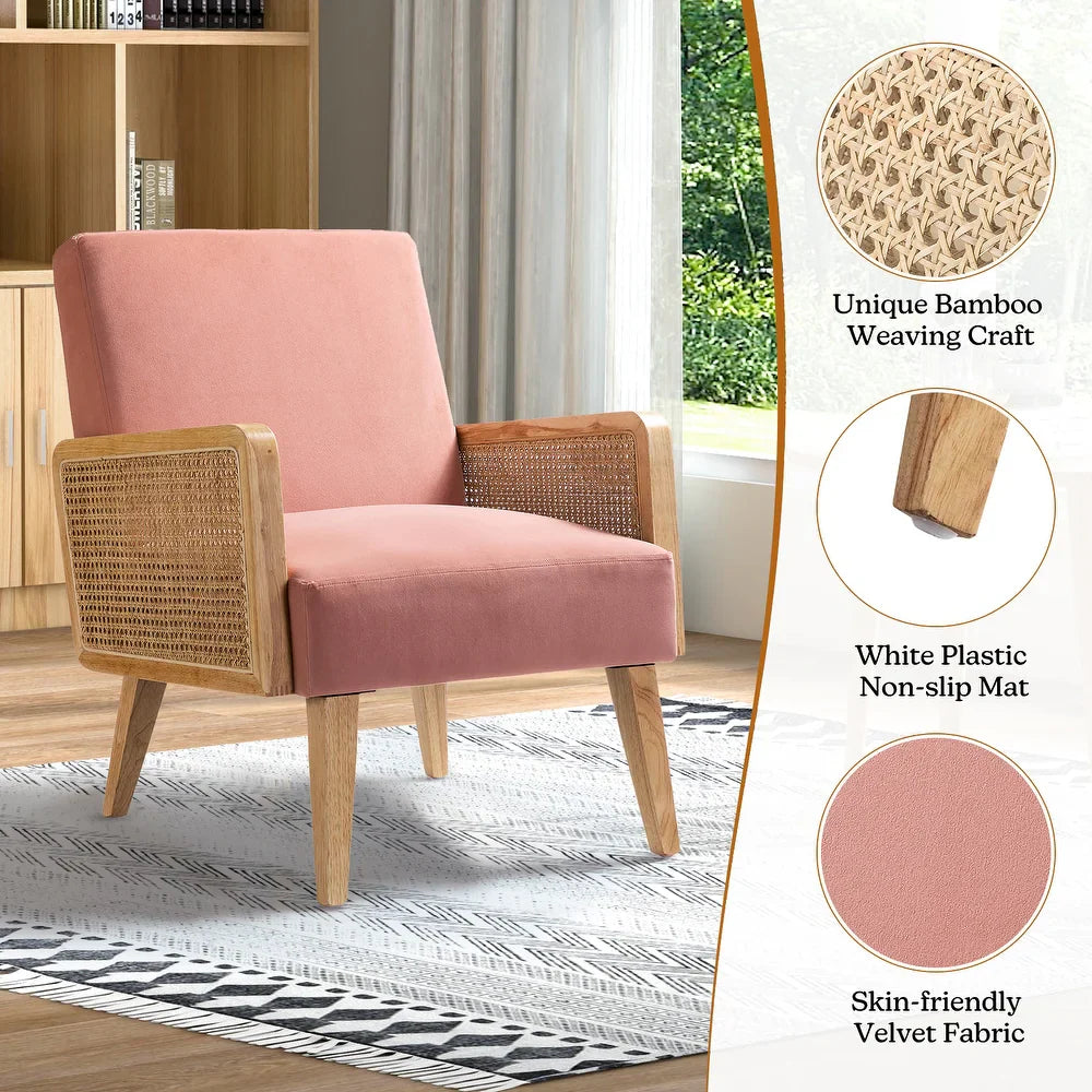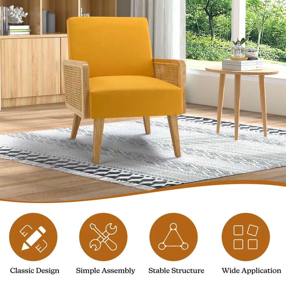 Carmina Upholstered Accent Chair with Natural Rattan Arms