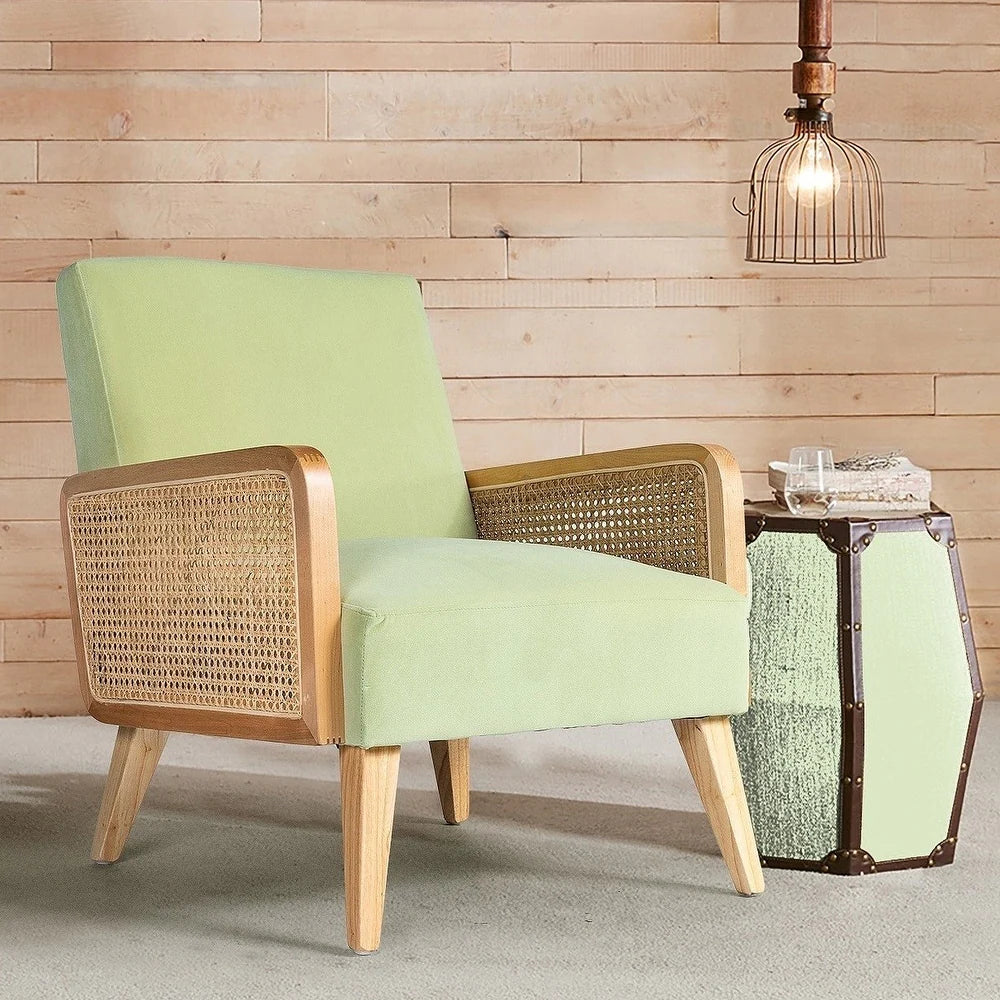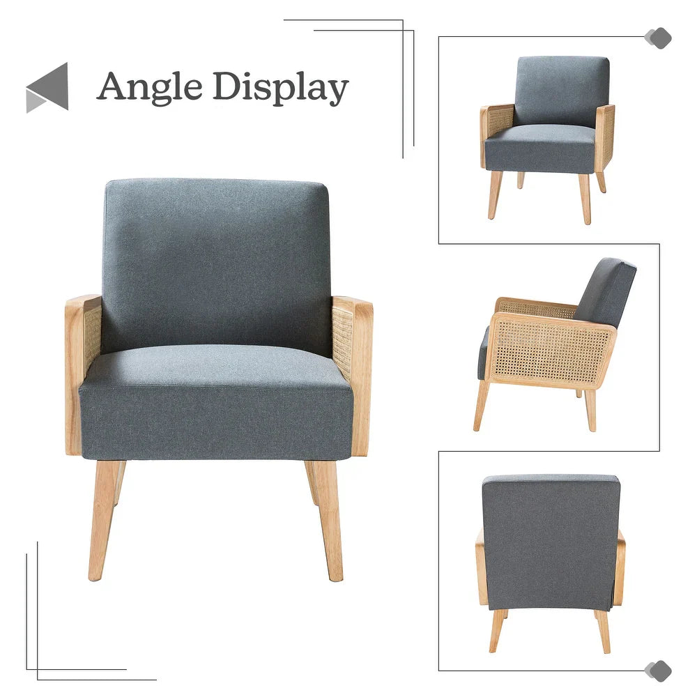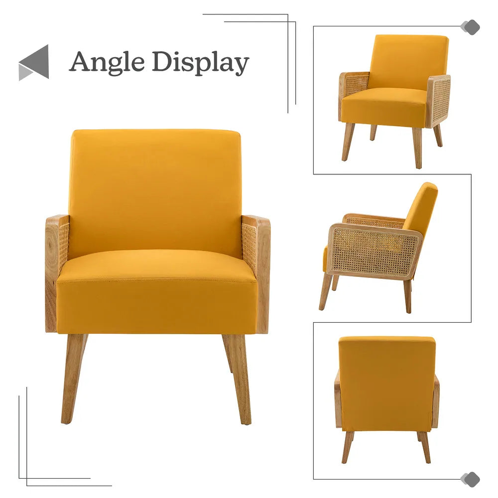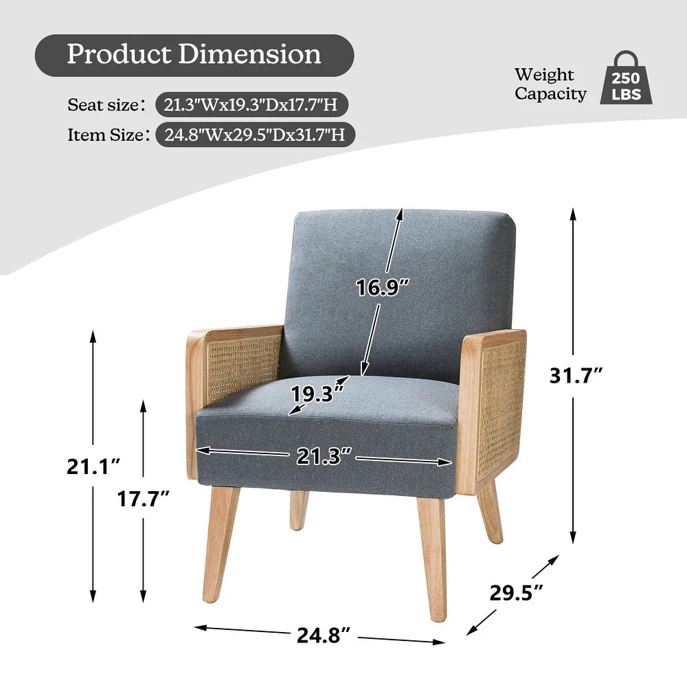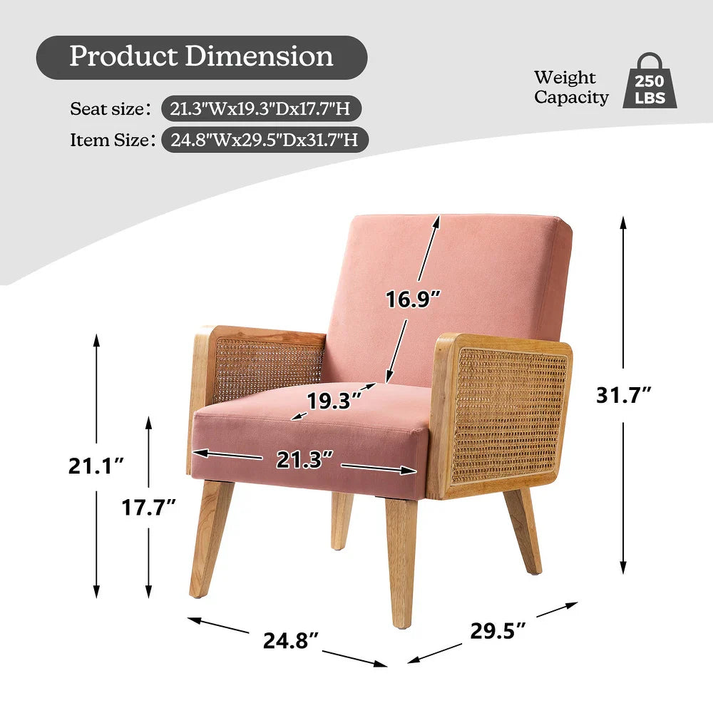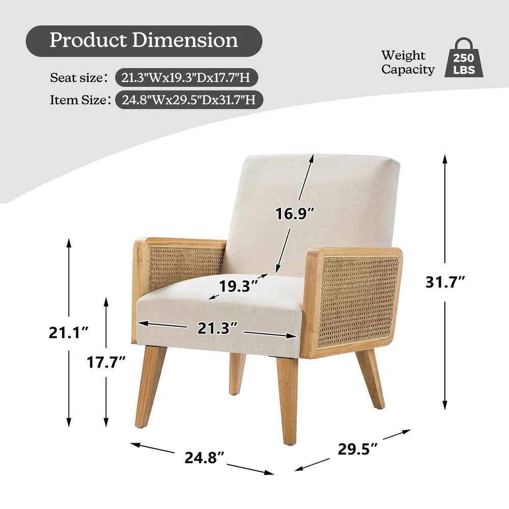 Carmina Upholstered Accent Chair with Natural Rattan Arms