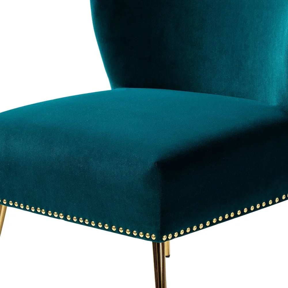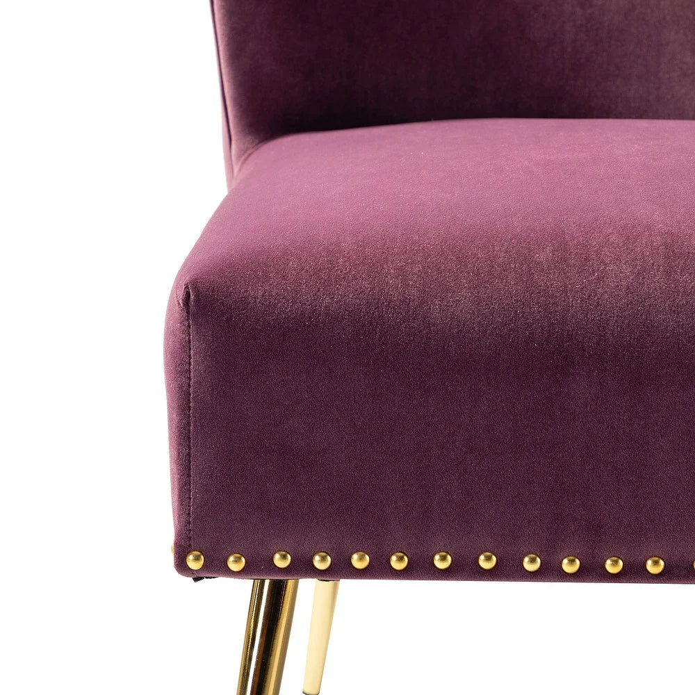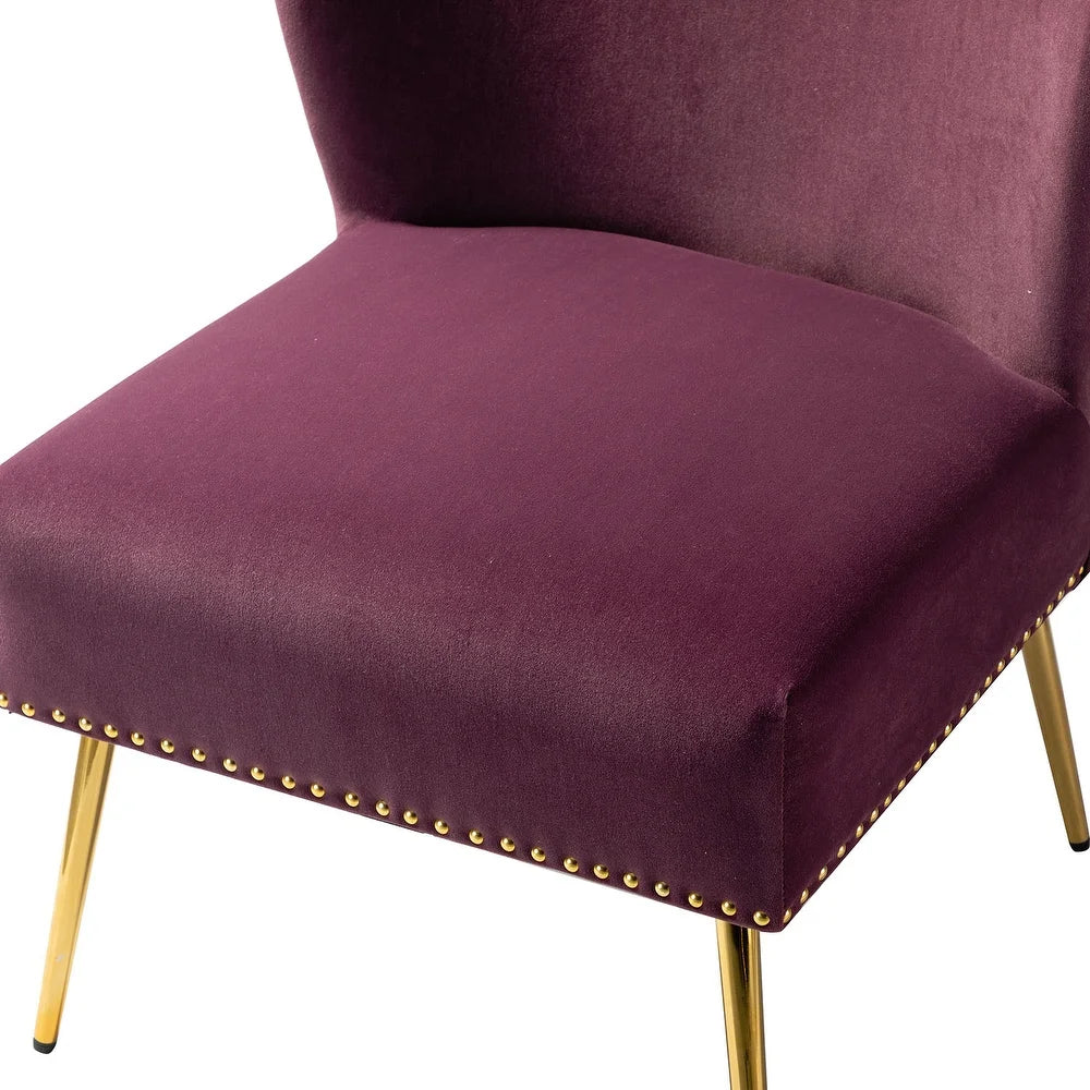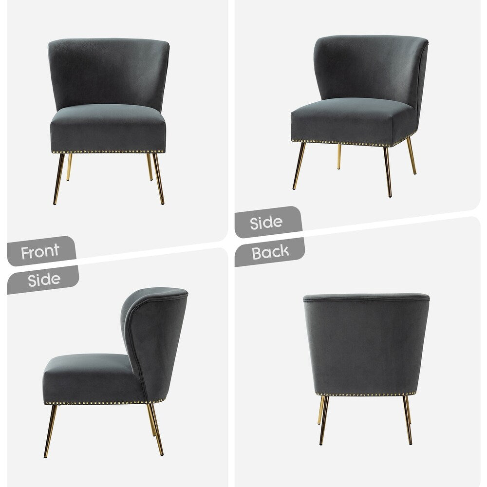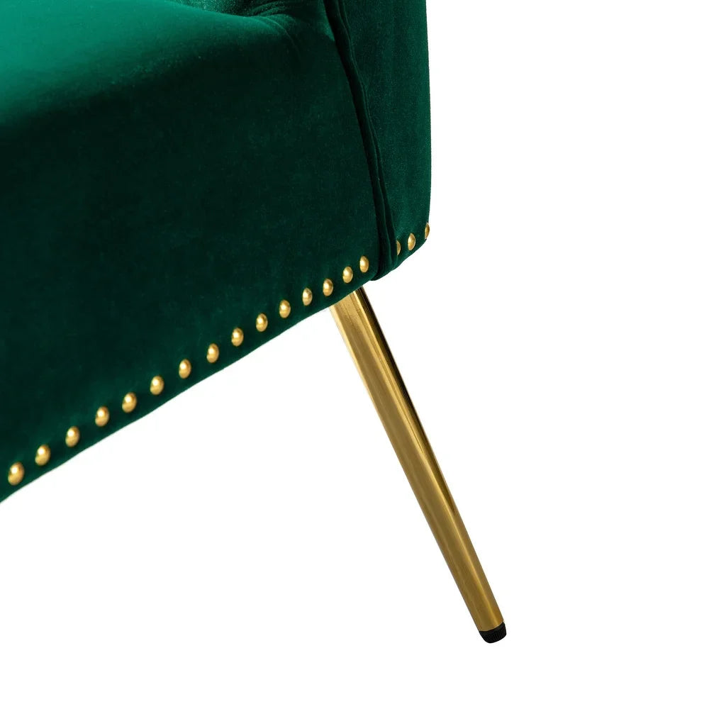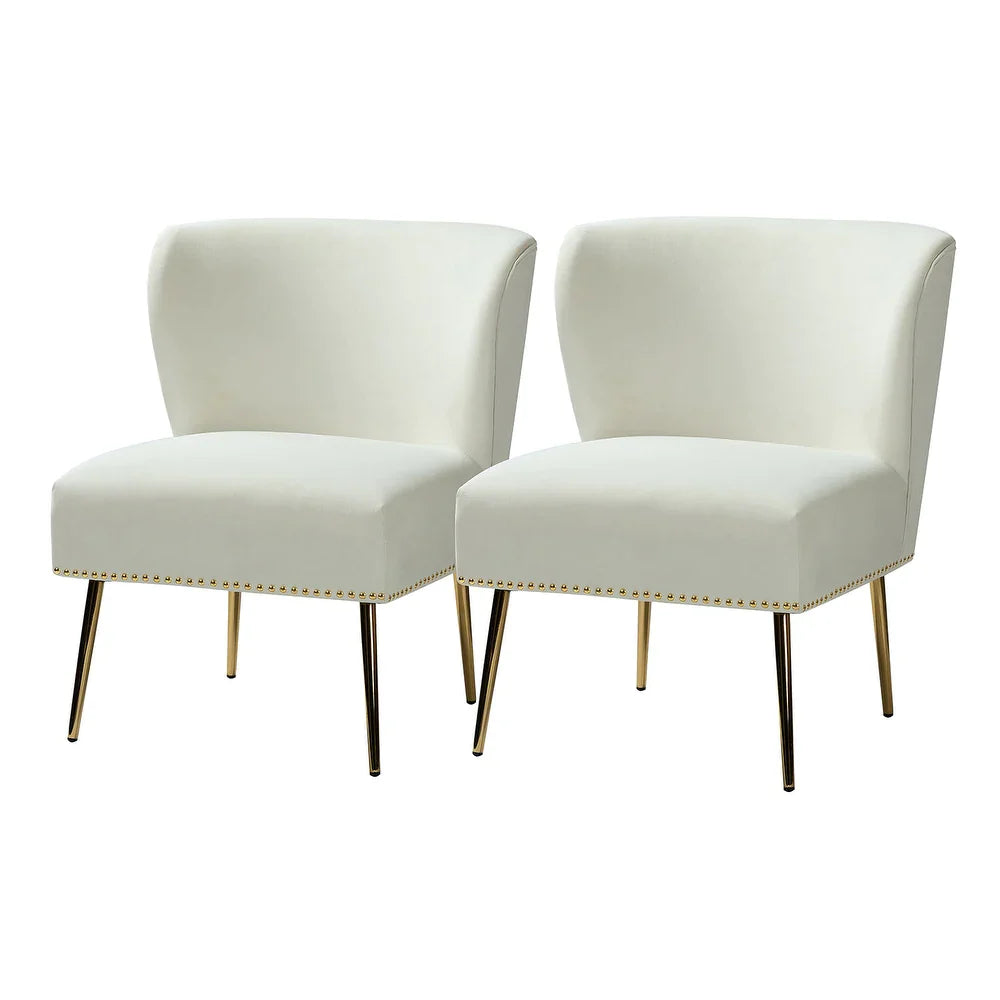 Add a touch of glam to your living room or bedroom with the Celtia Upholstered Vintage Accent Chairs with Nailhead Trim. These chairs feature a contemporary and classic style with soft velvet fabric and glam nailhead trim. The high-density foam filling with a solid and manufactured wood frame provides comfort and support, while the slender polished golden metal legs bring modern design to the timeless fashion of this piece. These chairs are perfect for any space from living room to office room to bedroom.